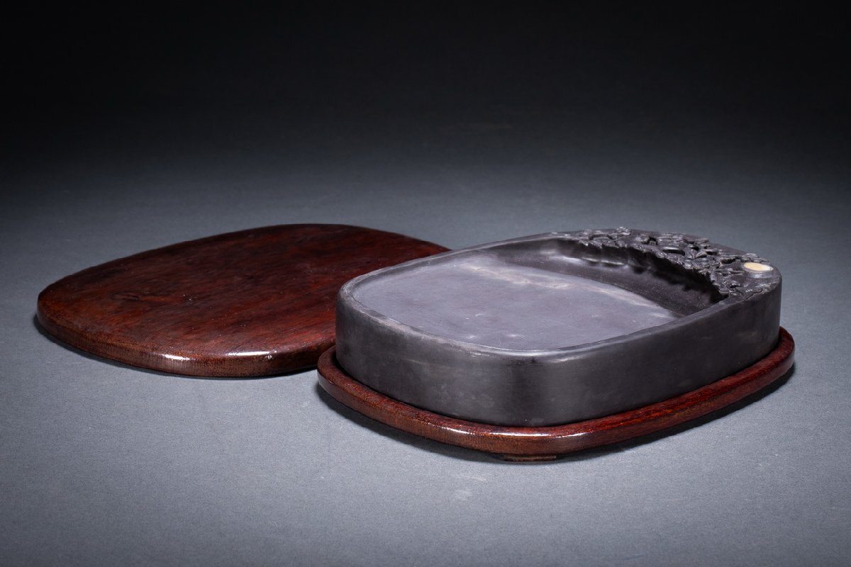 【清】関西某オークション購入 中国・時代物 古端溪 花鳥文房硯一方 極細工 古置物 古擺件 中国古美術7L11-37S2
