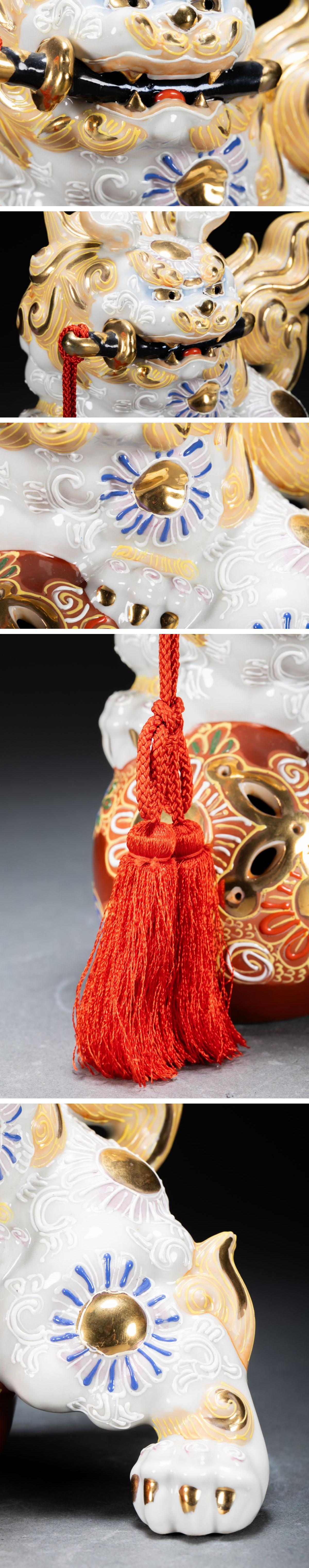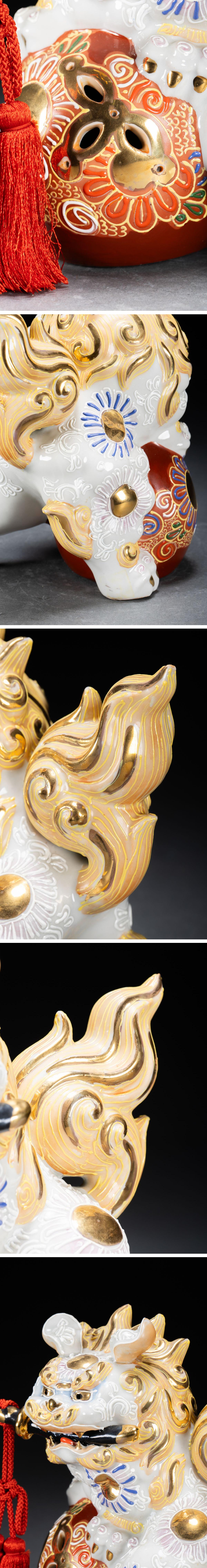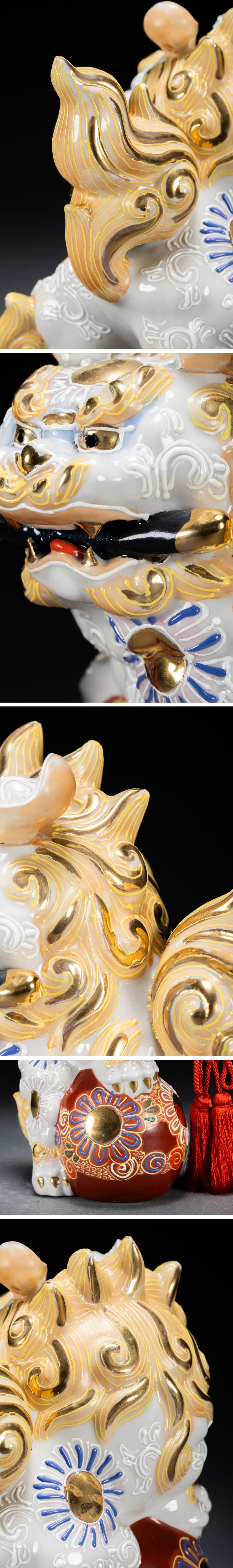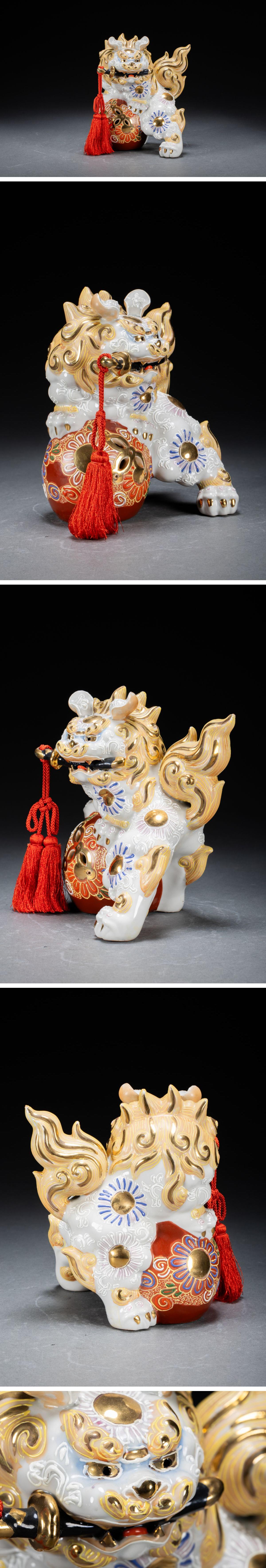【清】関西某オークション購入 時代物 九谷焼 金彩獅子置物 金運 極細工 古置物 古擺件 古美術7G5-415S03