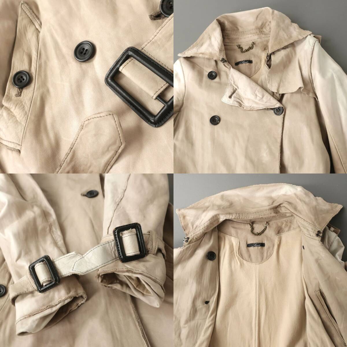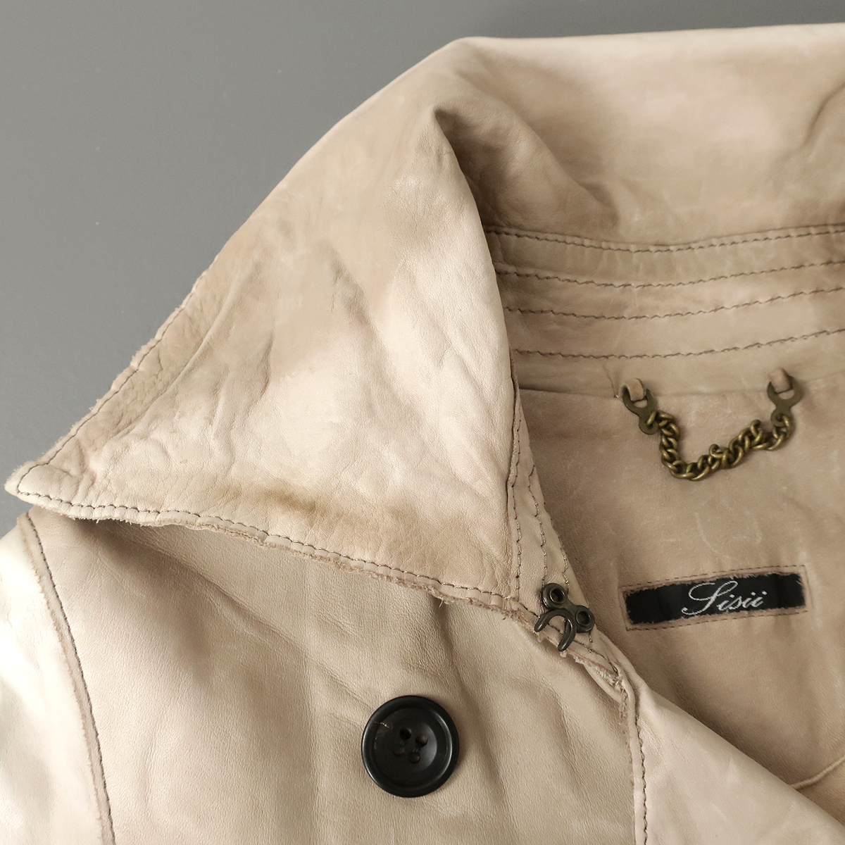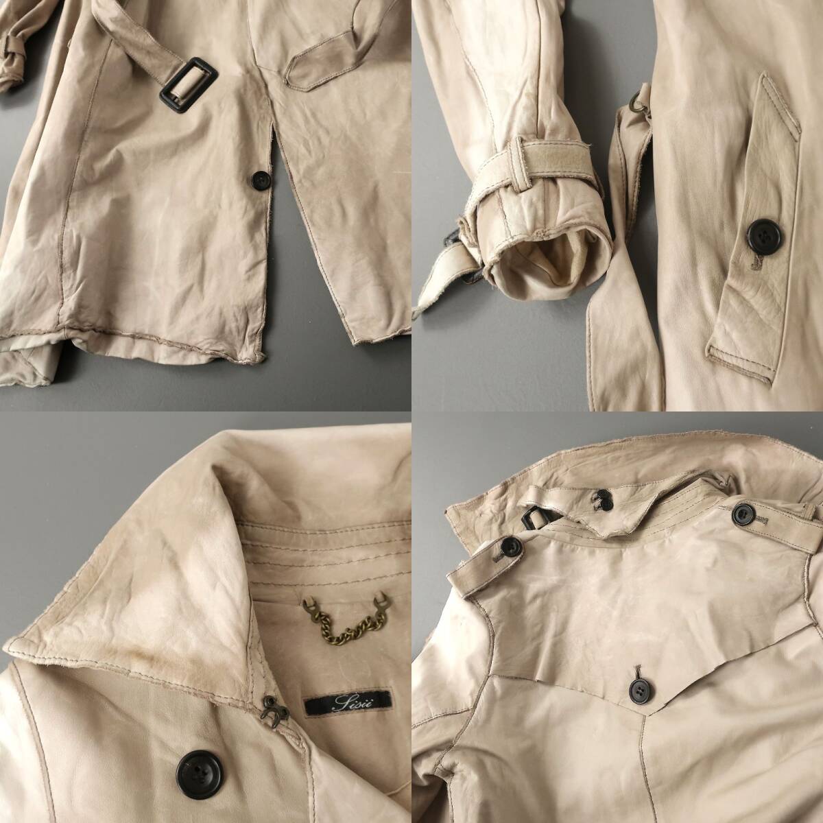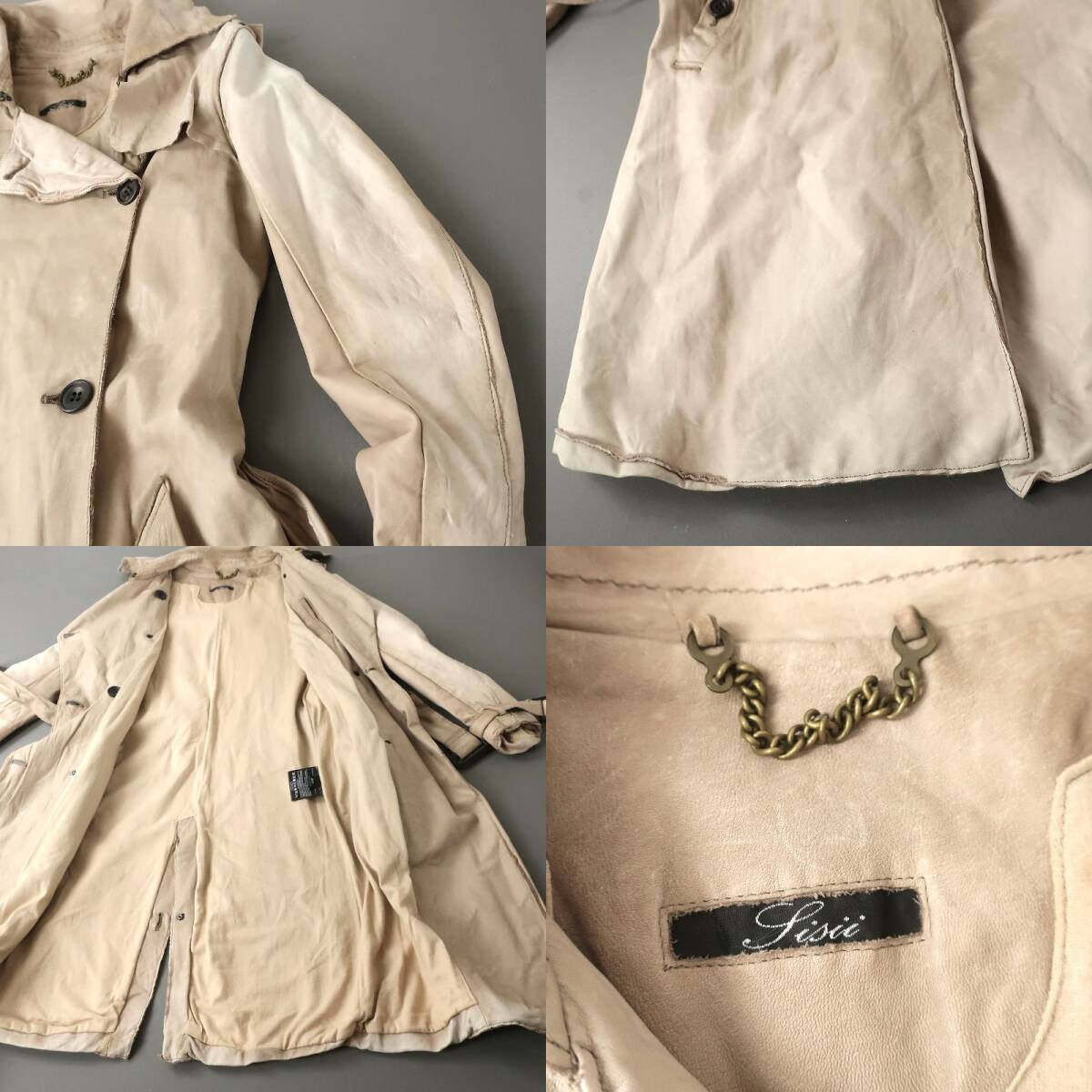 sisii シシ エイジング加工レザー トレンチコート 牛革 ヴィンテージ&シワ加工 ベージュ XS