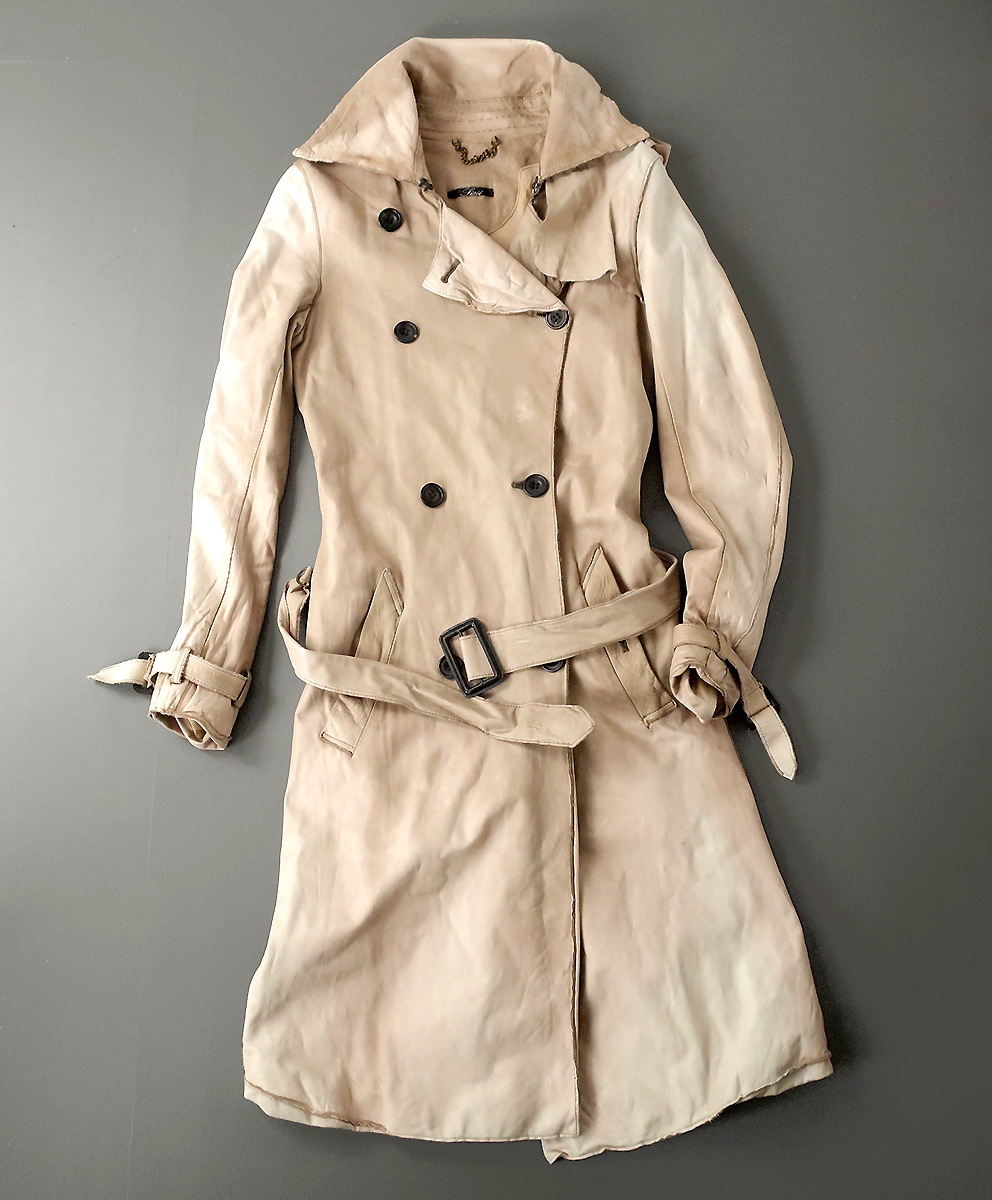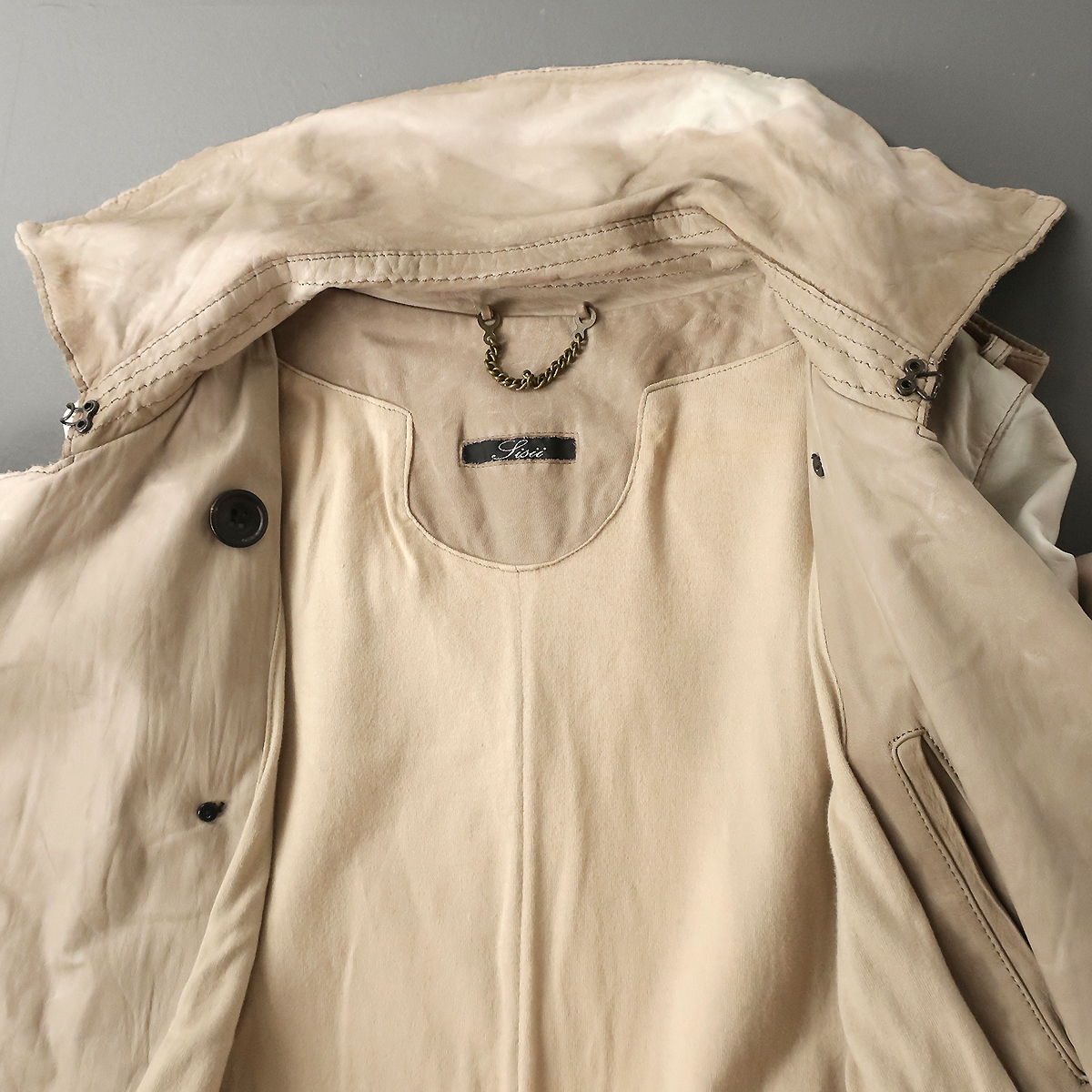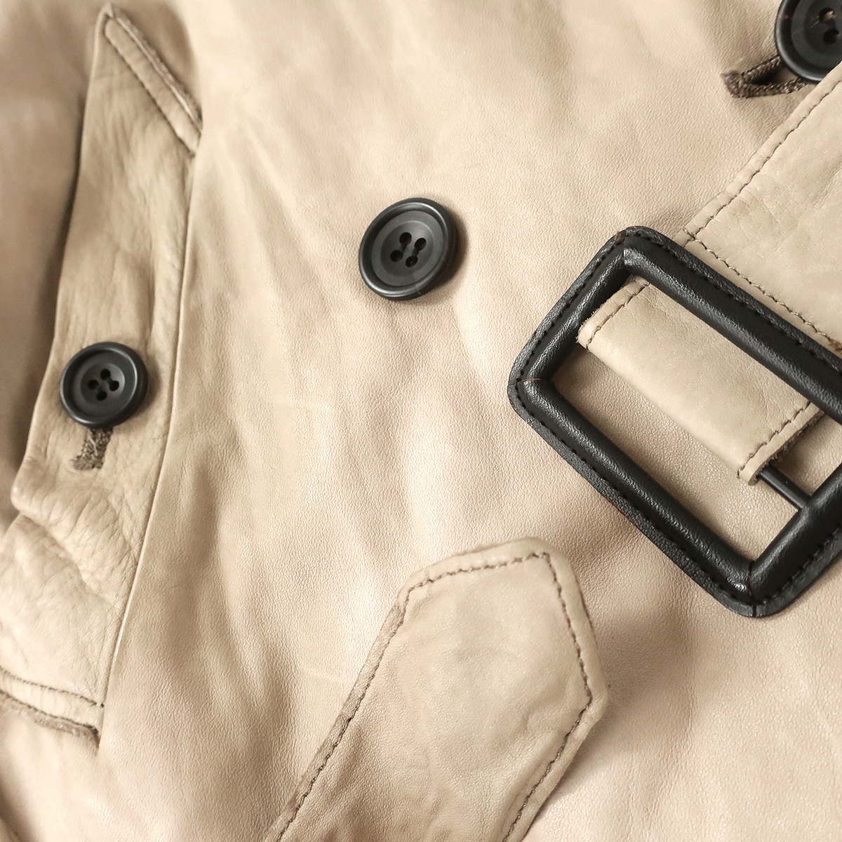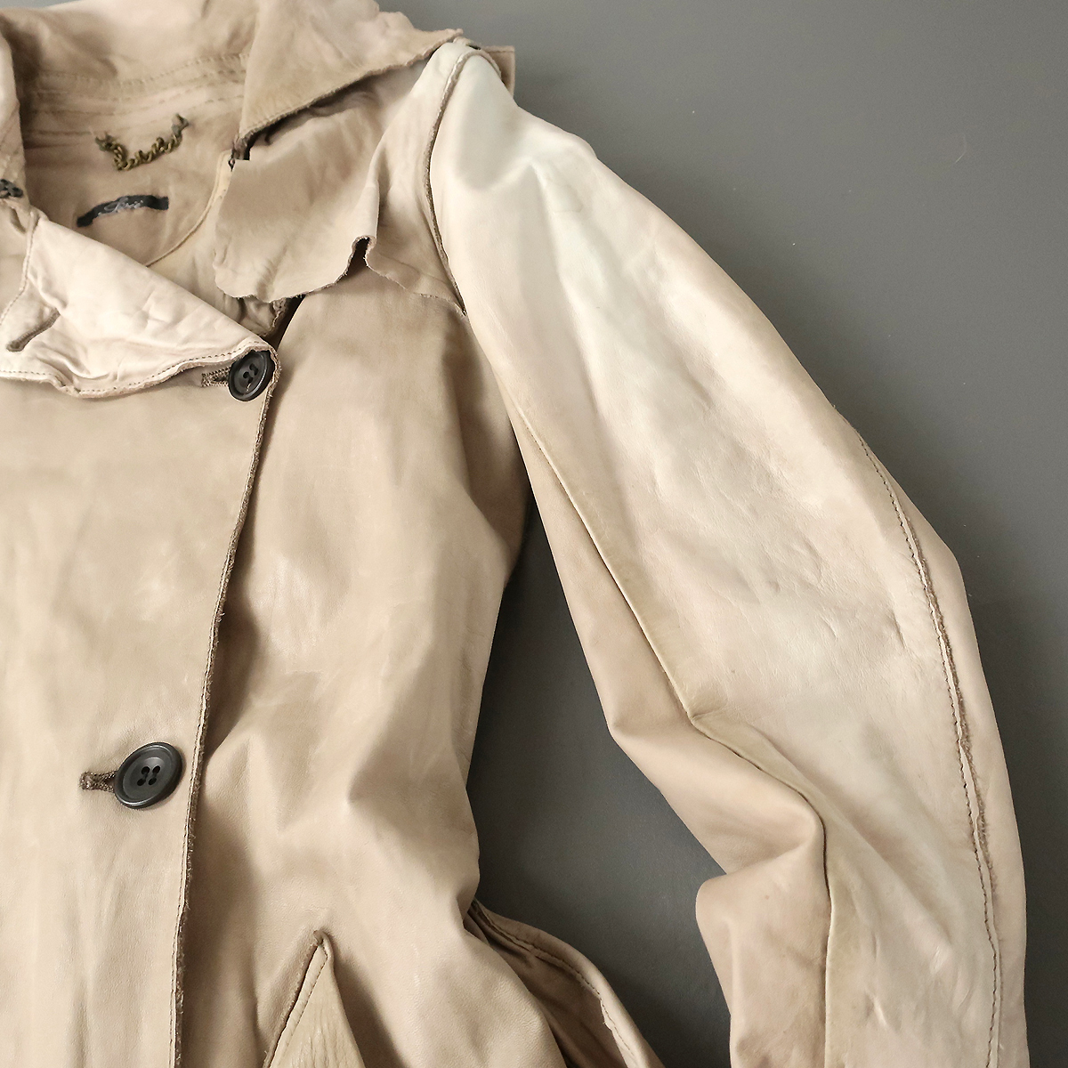 sisii シシ エイジング加工レザー トレンチコート 牛革 ヴィンテージ&シワ加工 ベージュ XS