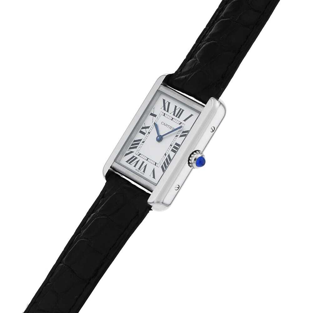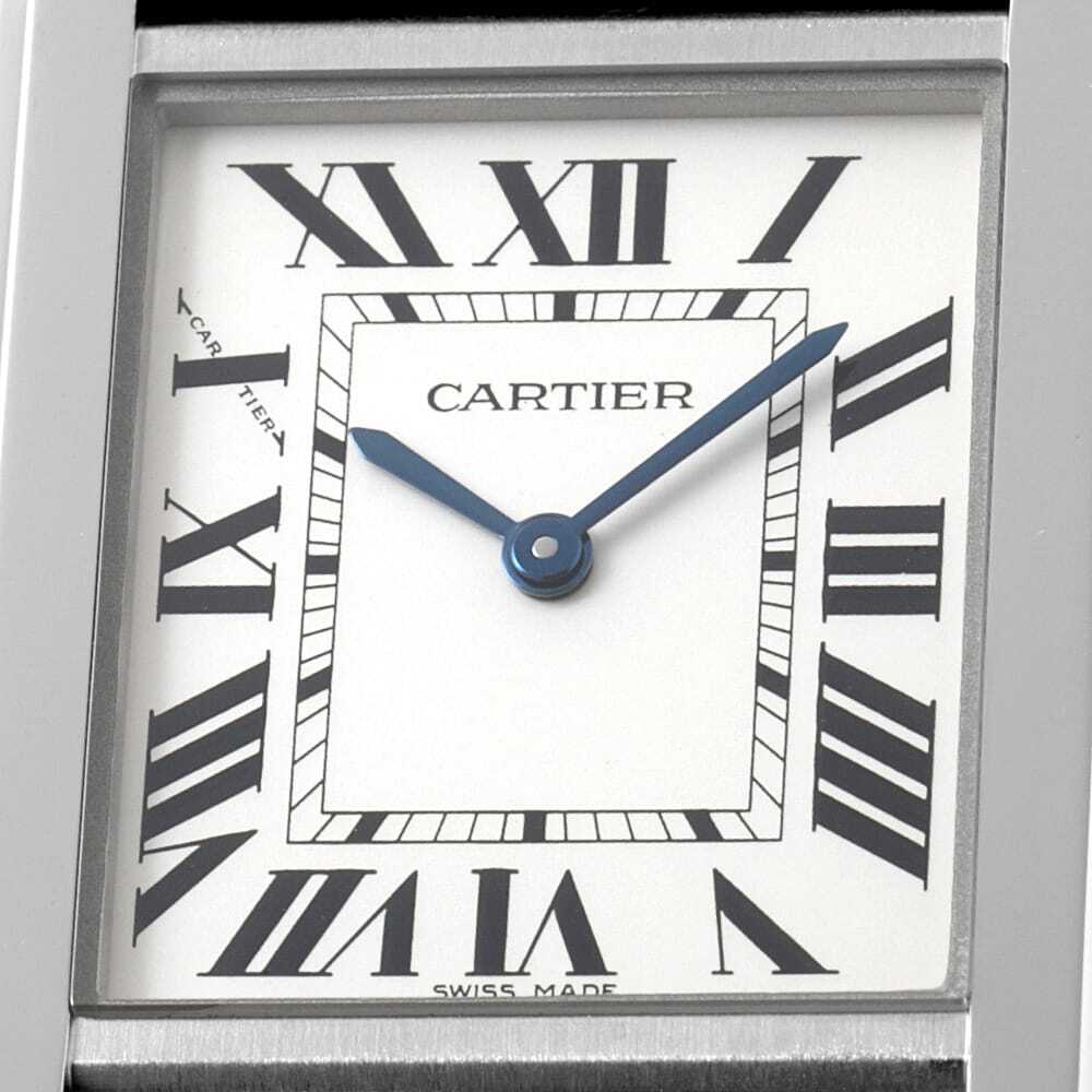 | モデル情報 | シンプルな角型ケースにシルバーダイアルが配された"タンク"シリーズの中でもクールなイメージを与えるモデル"タンク ソロ"です。10時位置のインデックスにCARTIERの文字を隠しており、細部にまでこだわりが感じられる逸品です。 |