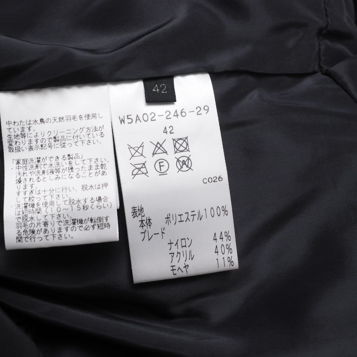 表記サイズ:42 (※念の為、商品実寸をご参考下さい。) 商品実寸 着丈 :約92cm 肩幅 :約38cm 身幅 :約50cm 袖丈 :約61cm |