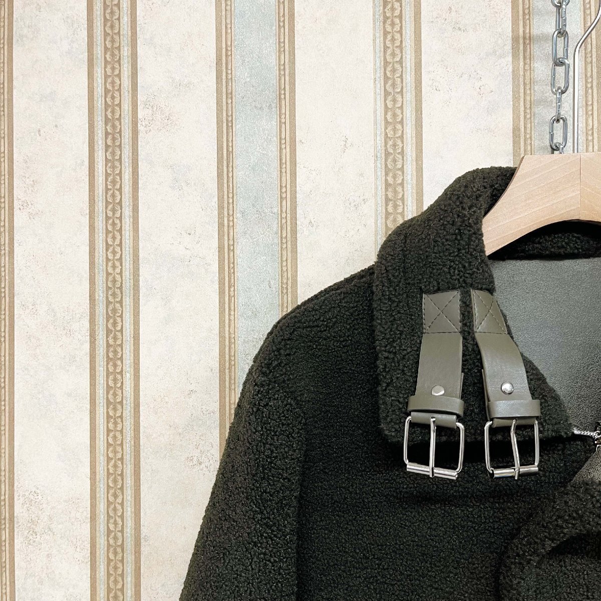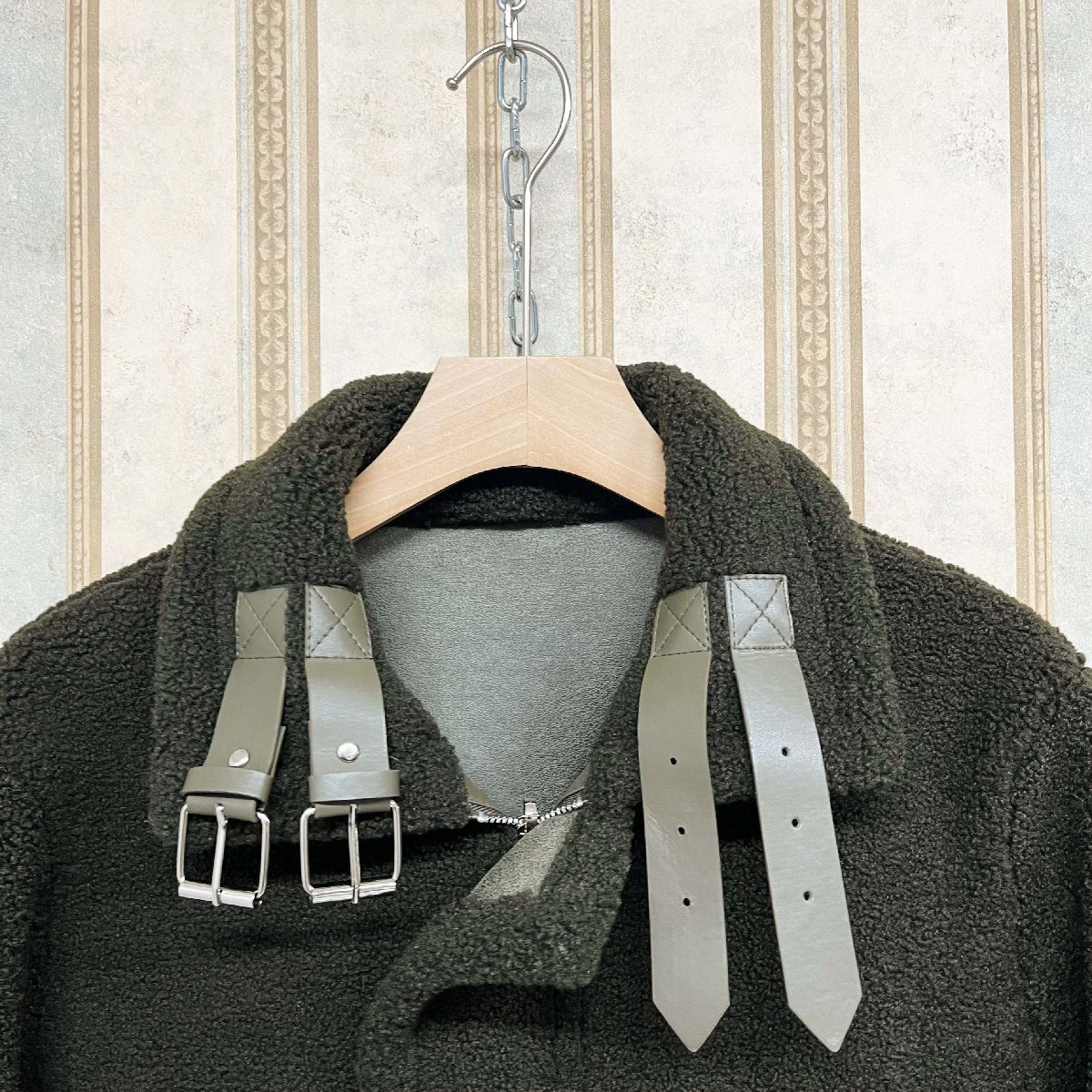 リバーシブル仕様で、レザージャケットとしてもボアジャケットとしても着用できる2WAYデザインです。その日のコーディネートや気分に合わせて簡単にスタイルを変えることができ、着回し力が抜群です。両面ともにポケットを配置しており、便利さと実用性も確保。襟元にもベルトが付いており、閉めると立ち襟となり、首回りを包み込む仕上げで暖かく着心地が良い。