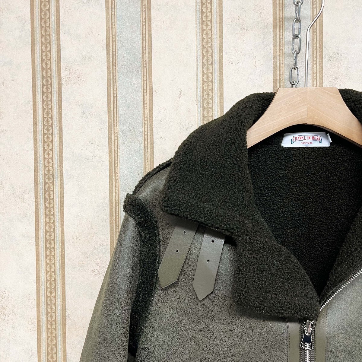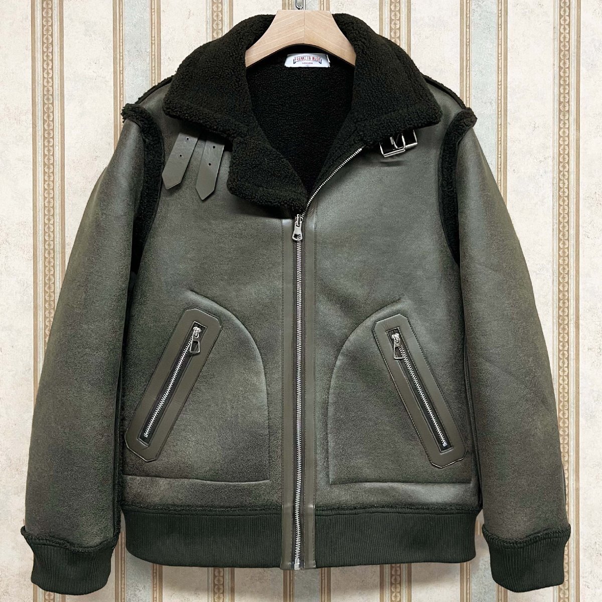 最上級 定価15万 FRANKLIN MUSK・アメリカ・ニューヨーク発 レザージャケット 羊革 本革 裏起毛 リバーシブル ボアコート 革ジャン サイズ1