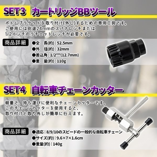 自転車工具 カートリッジBBツール コッタレスクランク チェーンカッター 4点セット 自転車 バイク