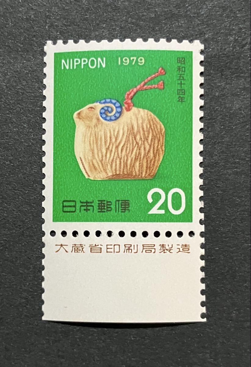 [未使用]年賀切手 昭和54年(1979)用 ひつじ鈴 20円 大蔵省印刷局製造銘付き