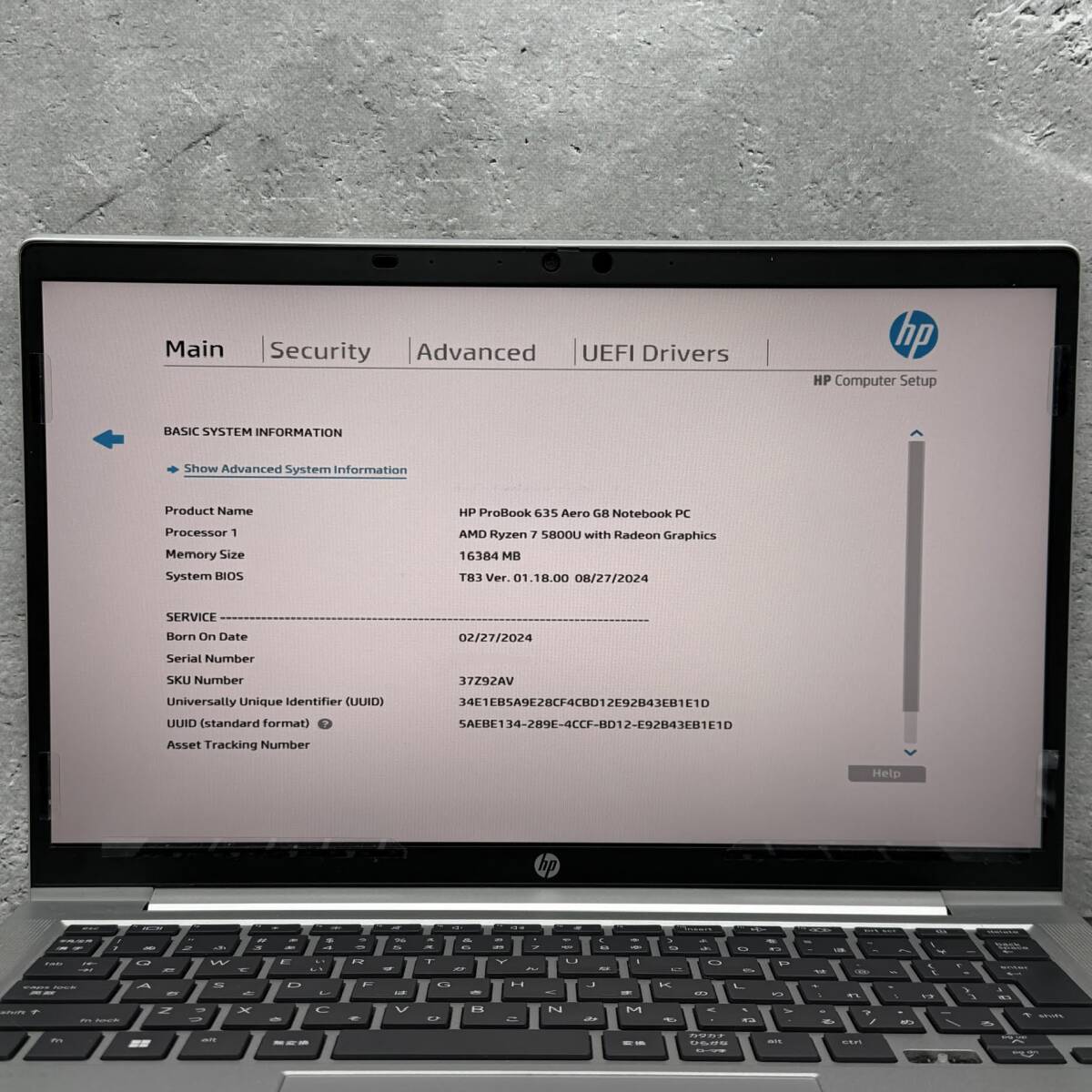 | Su-25865. HP / ProBook 635 Aero G8 / Ryzen 7-5800U / AMD系CPU / 16GBメモリ / HDD無し / 13インチ / 通電確認・ジャンク | |