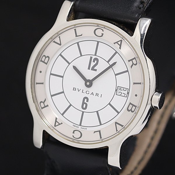 1円 箱付 稼働 ブルガリ ソロテンポ ST35S M17131 QZ ホワイト文字盤 メンズ腕時計 1950300 12KHT SMZ