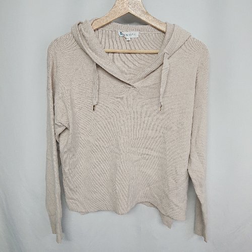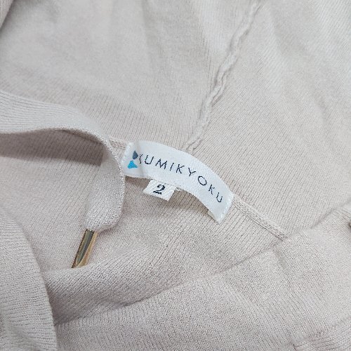 ◇ ⊇ KUMIKYOKU スリット加工 Vネック 長袖 リブニットパーカー サイズ2 ベージュ レディース E