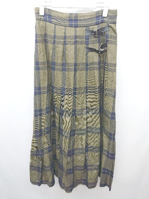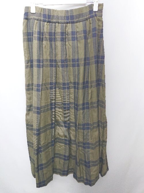 ◇ LOWRYS FARM ローリーズファーム チェック ロング プリーツ スカート サイズL カーキ ネイビー系 レディース P