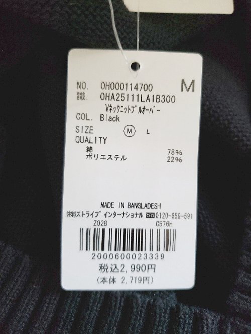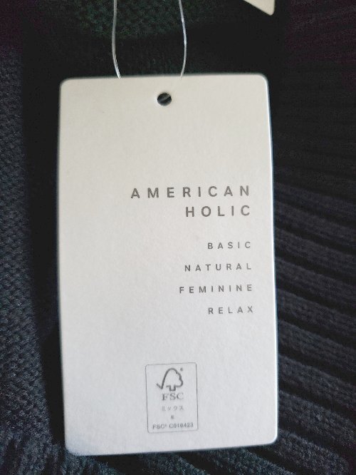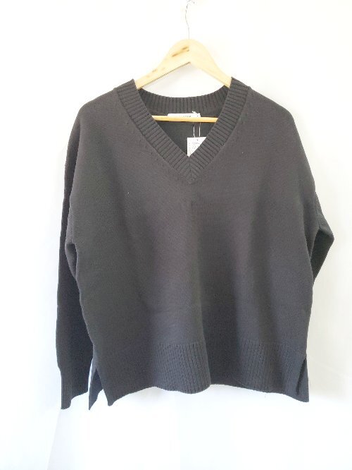 ◇ ⊇ 未使用 アメリカンホリック タグ付き コットン 長袖 Vネック ニット セーター サイズM ブラック レディース E