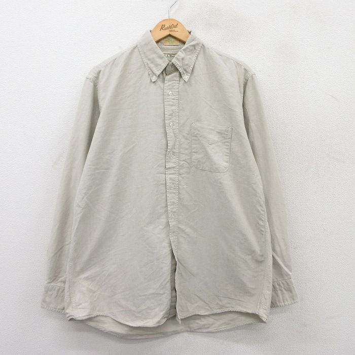 【商品名】 XL★古着 エルエルビーン 長袖 ブランド シャツ メンズ 80年代 80s ダック地 コットン ボタンダウン USA製 ベージュ【spe】