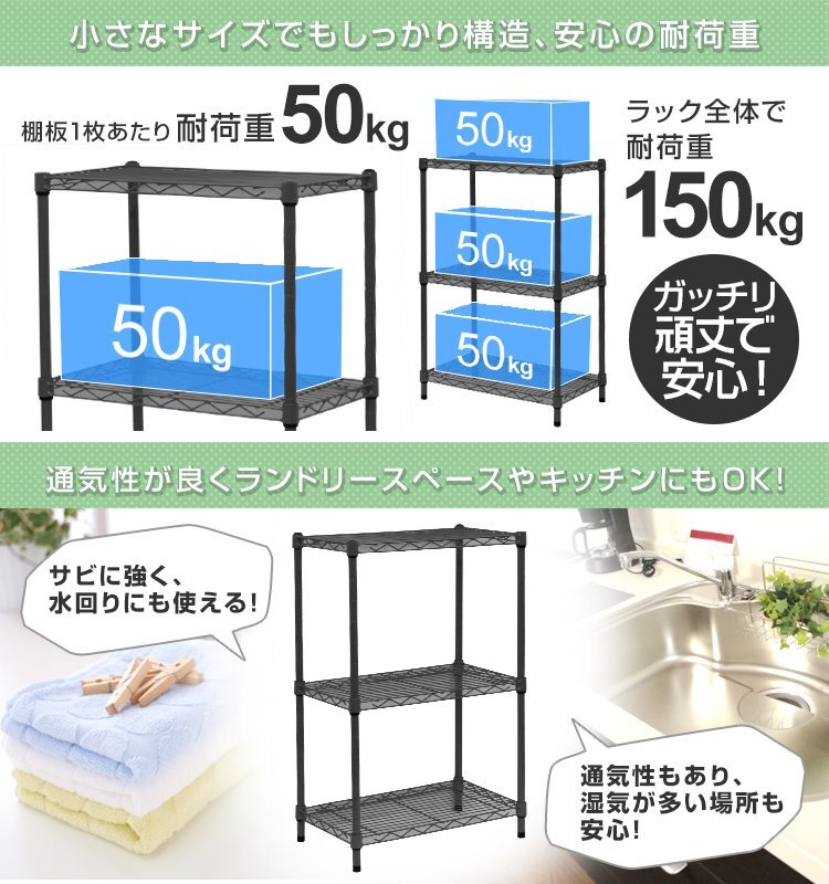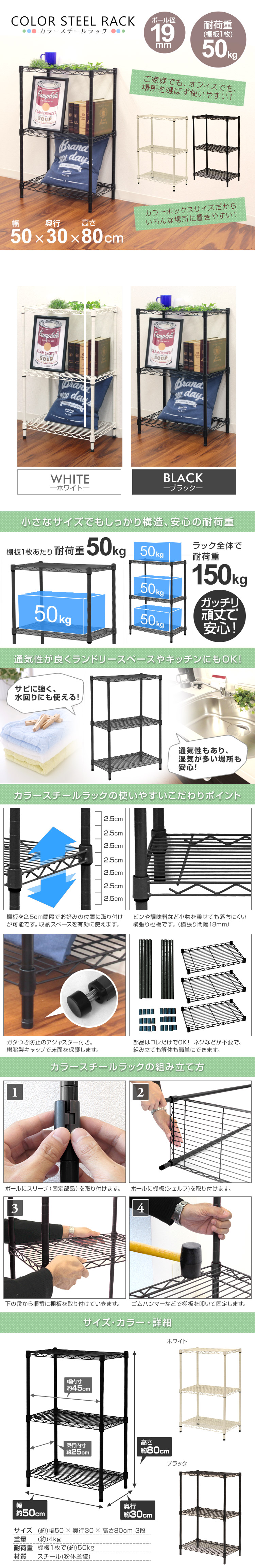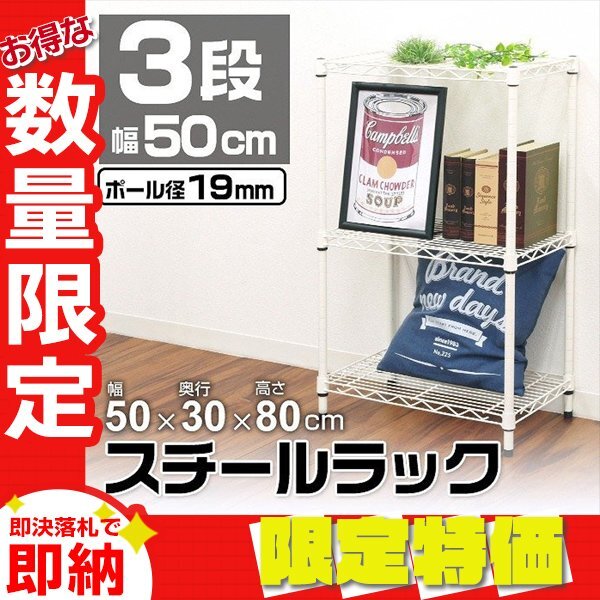 | どんなお部屋にも合わせやすいスチールラックです。 ぐらつき防止アジャスター付き! クギやネジを使わずに簡単に組み立て出来ます! 棚の高さを自由に変えることができます。 一人暮らしのお部屋やリビング、キッチン、物置など場所を問わず活躍できます。 錆に強いパウダーコーティングで水回りでの使用も◎ アパレルショップの店頭用やオフィスにも使用されています。 【仕様】 サイズ(約):幅50×奥行30×高さ80cm 耐荷重(約):(全体)150kg / (棚板1枚あたり)50kg 材質:スチール(粉末塗装) 重量(約):4kg カラー:ホワイト 【商品内容】 シェルフ(棚板) ×3 ポール(上下2本1組) ×4 スリーブ(2個1組) ×12(+予備付属) 【もちろん新品未使用品です】 |