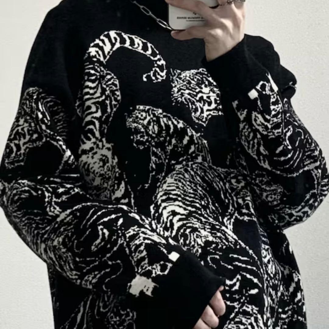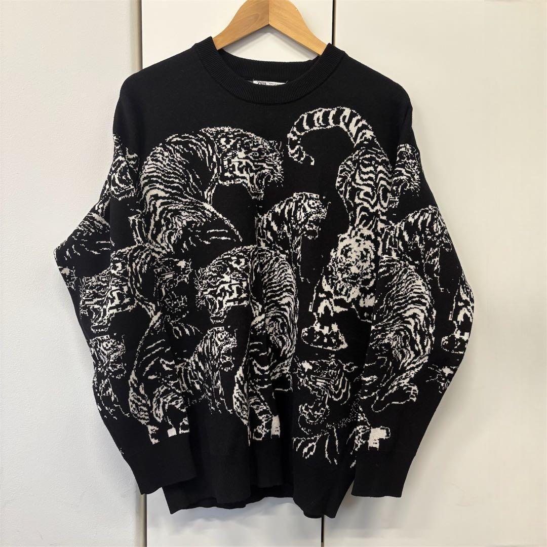 ZARA(ザラ)の、大胆なタイガー(虎)の総柄が特徴的なニットセーターです。