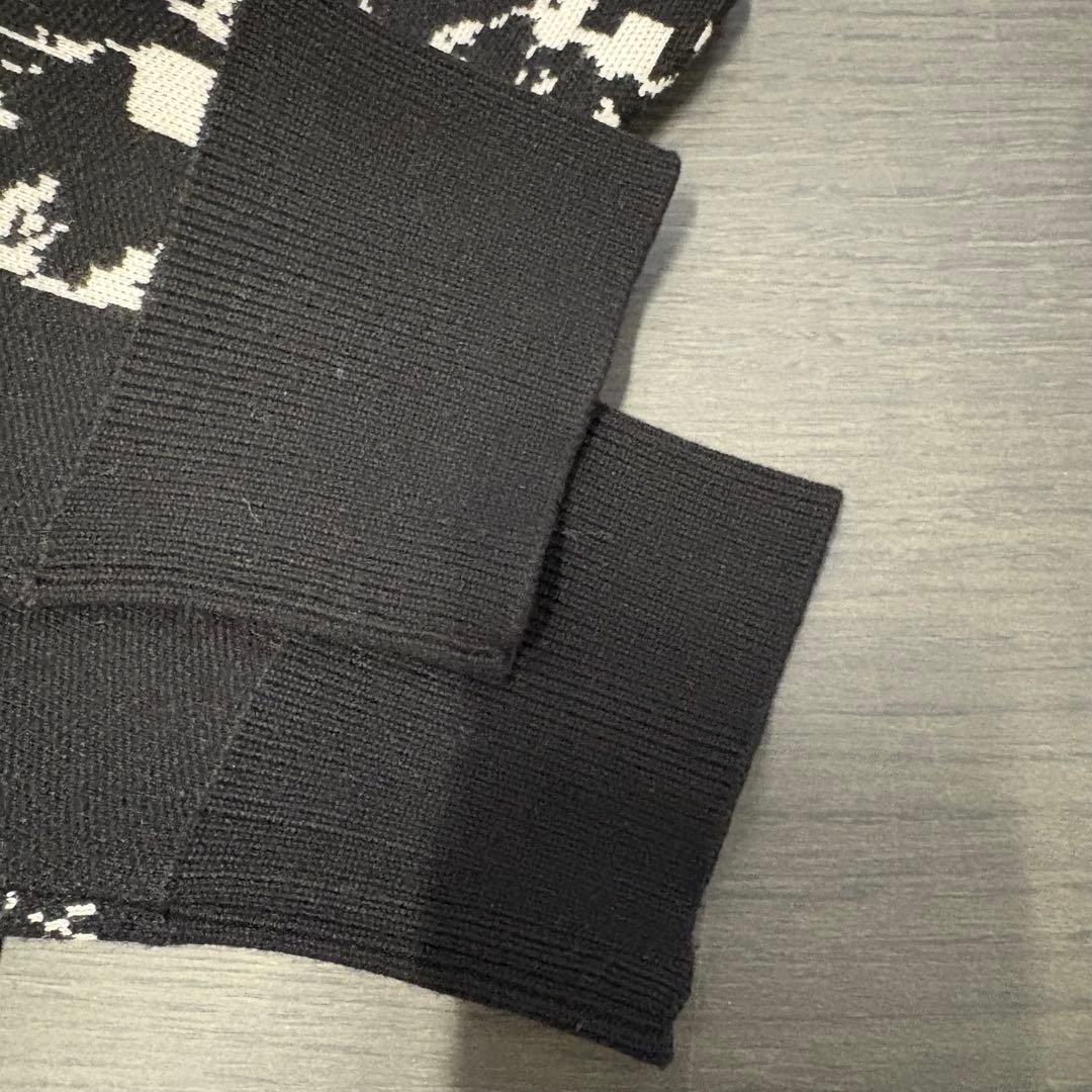 カラーはベーシックなブラックとホワイトのモノトーンで、総柄ながらも着回しやすく、ストリートスタイルやモード系のアクセントとして活躍します。