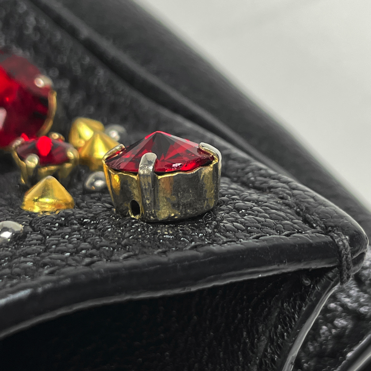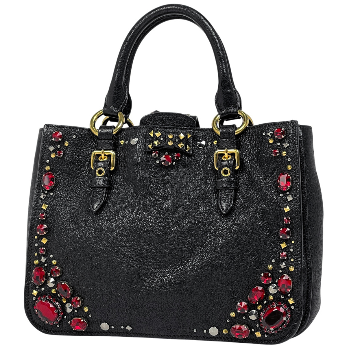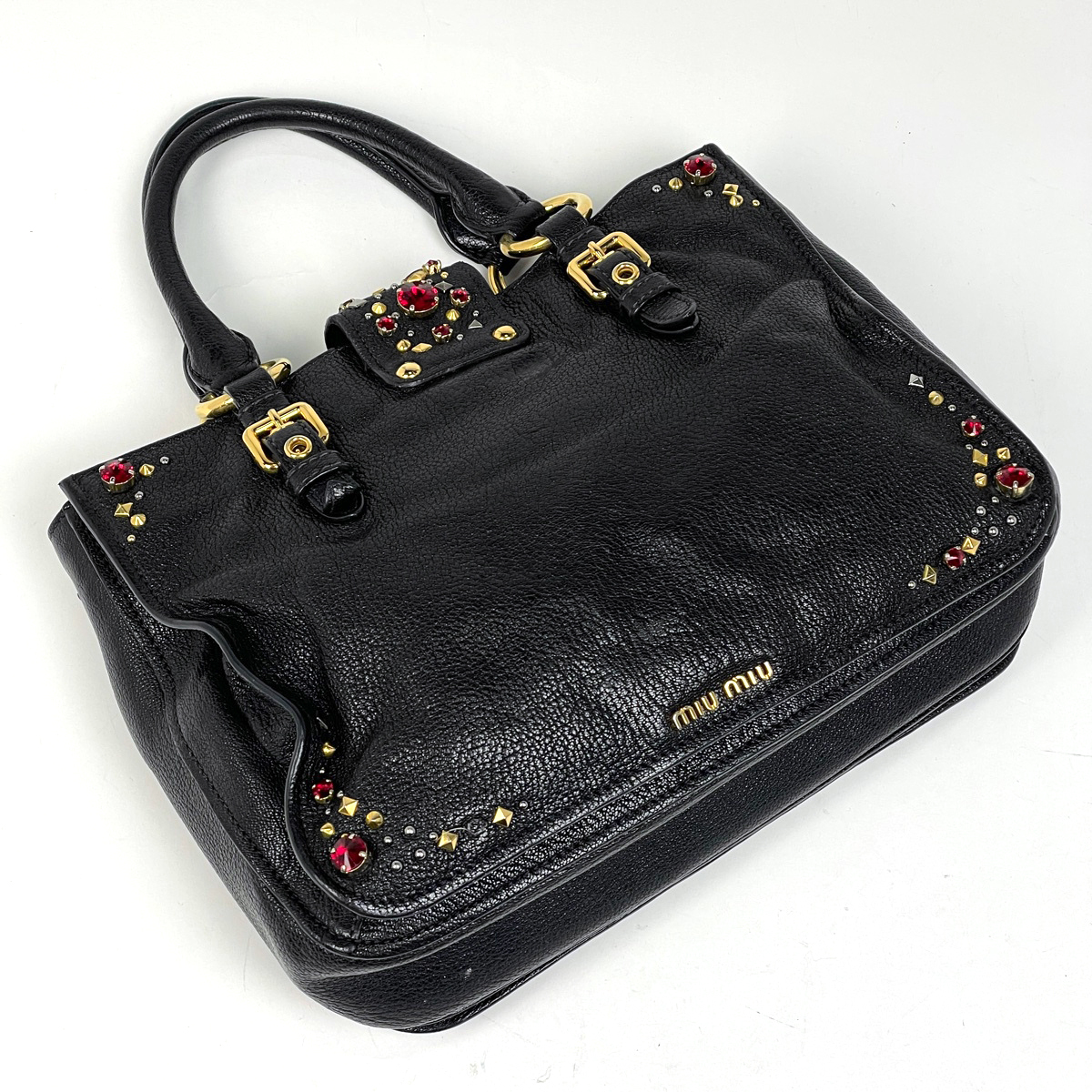 | ミュウ ミュウ Miu Miu ロゴ ハンドバッグ スタッズ ラインストーン ハンドバッグ レザー ブラック レディース 【中古】 |