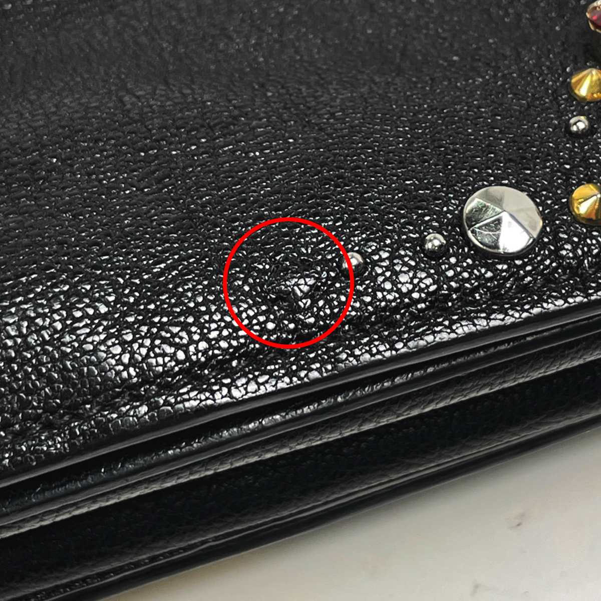 | 《全体》型崩れ、生活臭、スレ、キズ、シワ、汚れ 《内側サイド》剥がれ 《ハンドル》毛羽立ち、ひび割れ、押し跡、根元にほつれ 《開口部フチ》ひび割れ、亀裂、剥がれ 《金具》剥がれ、変色、小キズ 《ラインストーン》小キズ、欠け、欠損 《ショルダーストラップ》欠品 |