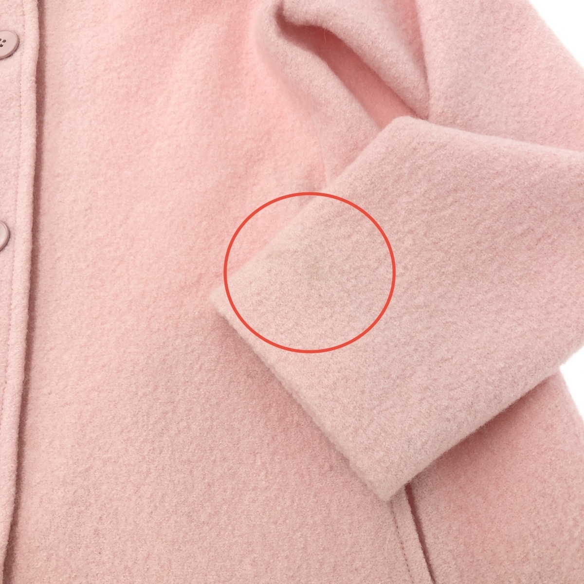 【コンディション】 こちらは一般的な中古品になります。中古品ですので使用形跡があります。 右袖に小穴あり 左袖口に汚れあり ※画像をご参照ください。 |