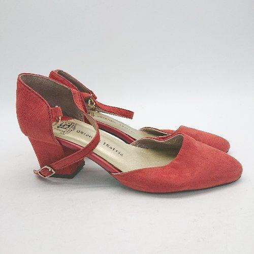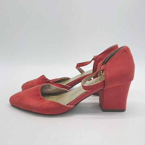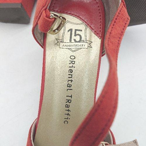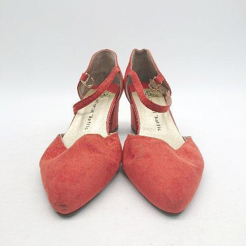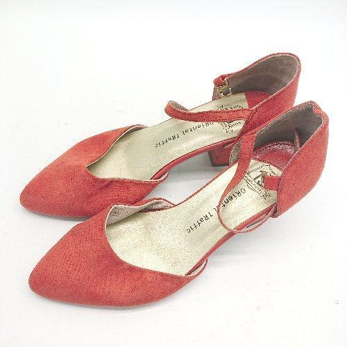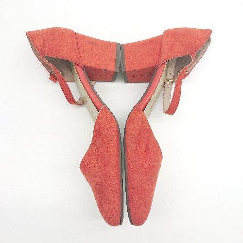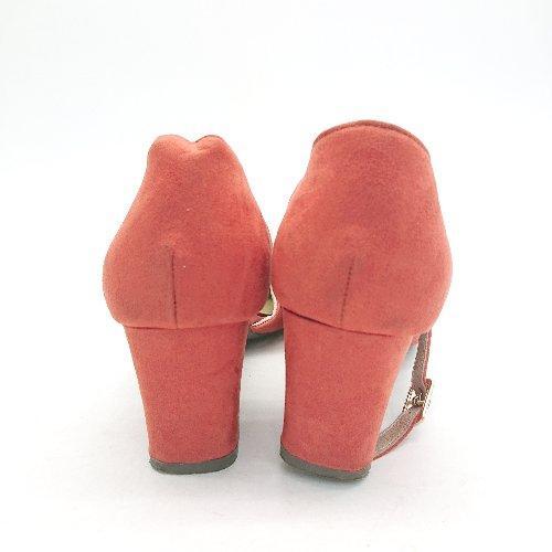◇ Oriental Traffic ポインテッドトゥ チャンキーヒール スエード調 パンプス サイズ36 オレンジ レディース E