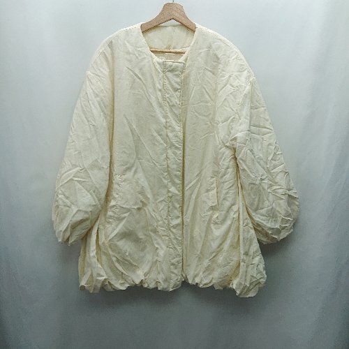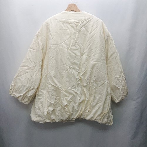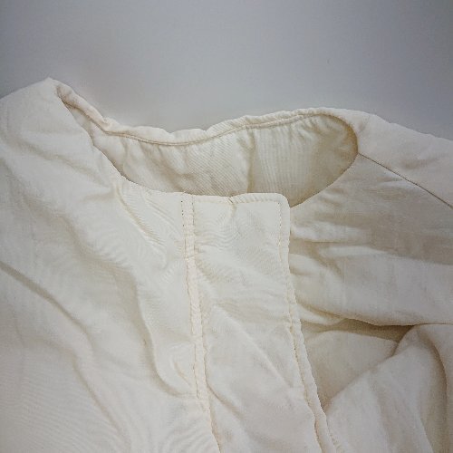 ■ ⊇ Louere シャーリング加工 長袖 ノーカラー中綿ジャケット サイズS アイボリーホワイト レディース E