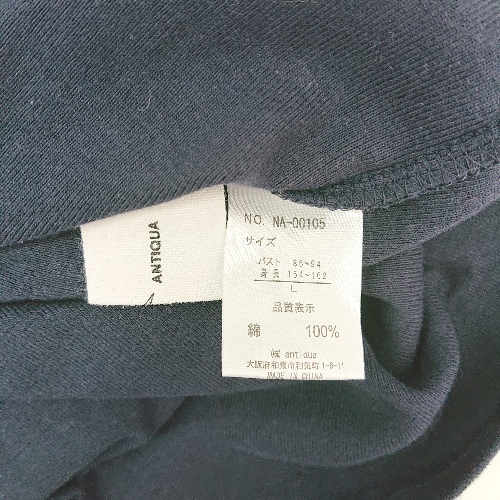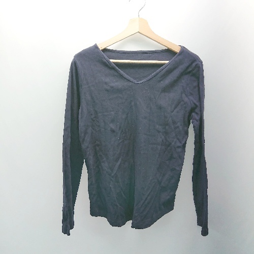 ◇ ANTIQUA コットン100% Vネック 無地 シンプル おしゃれ 長袖 Tシャツ サイズL ネイビー レディース E
