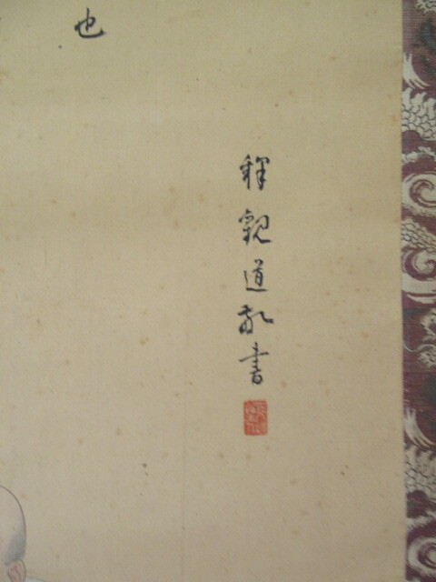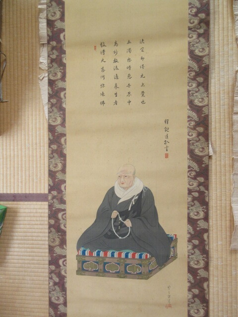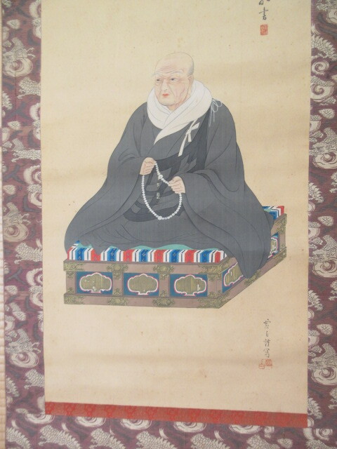 無刊記(大正期頃だと思われます) 親鸞聖人図 作者不明  絹本  1幅  大きさ 約41×116cm 総丈 約55×210cm  木箱入