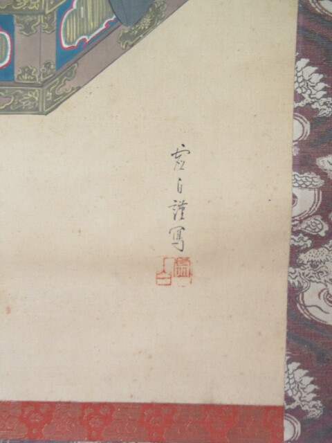 経年による汚れ6シミ有ります。参考品とお考え下さい 表具の金具少傷み有