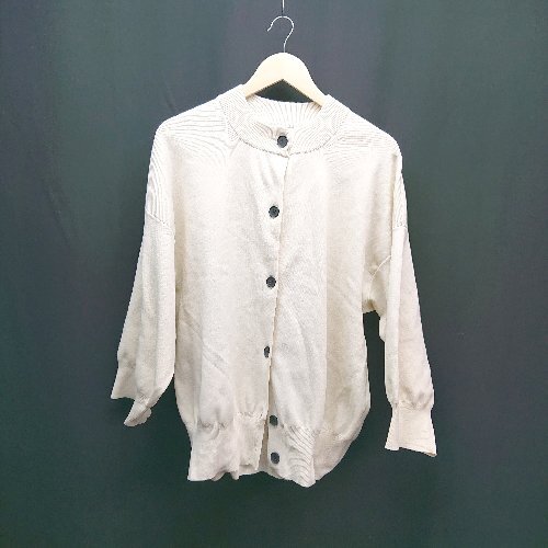 ◇ JEANASIS ジーナシス フロントボタン 無地 ゆったり 大人っぽい 長袖 カーディガン サイズF アイボリー レディース E