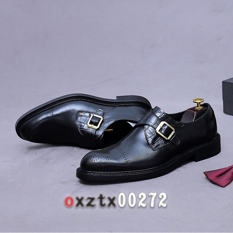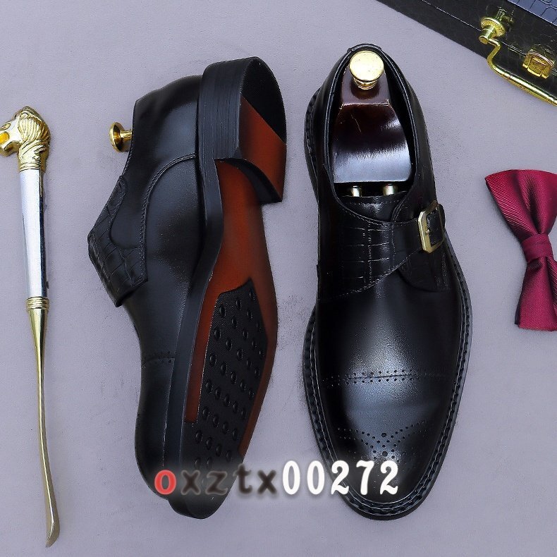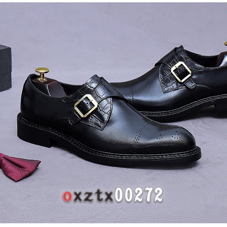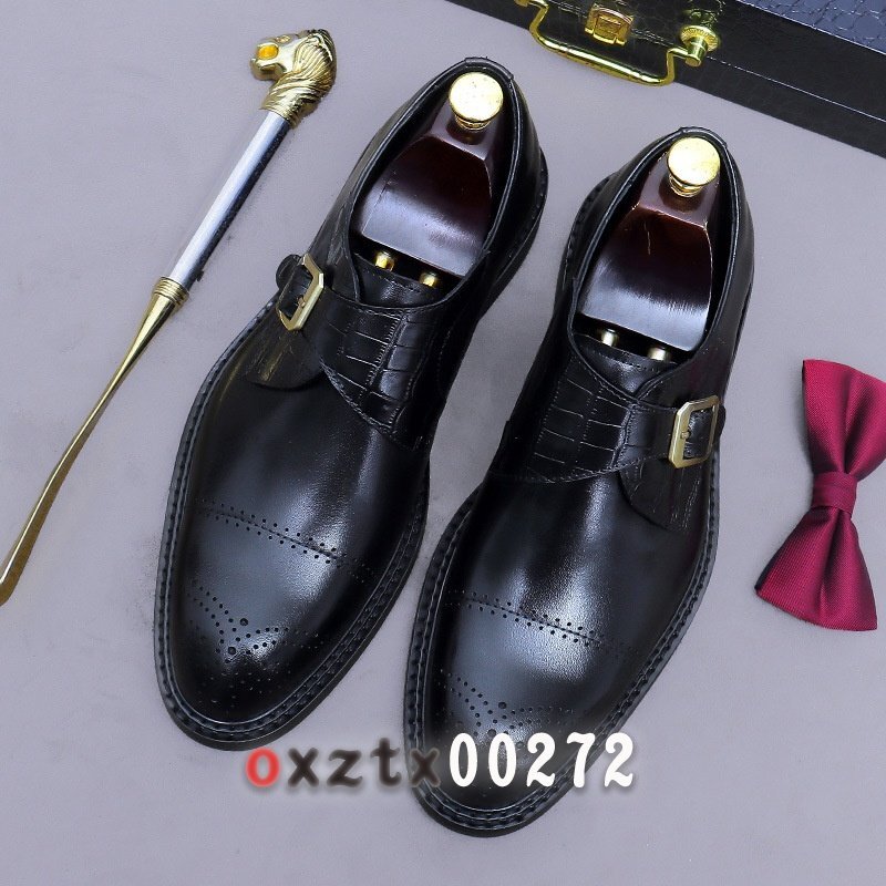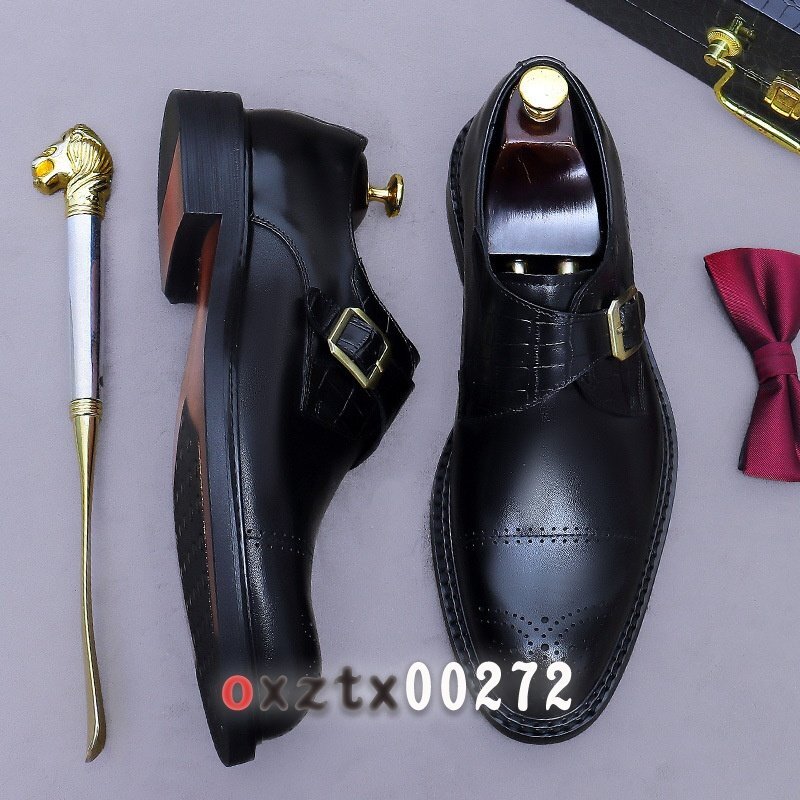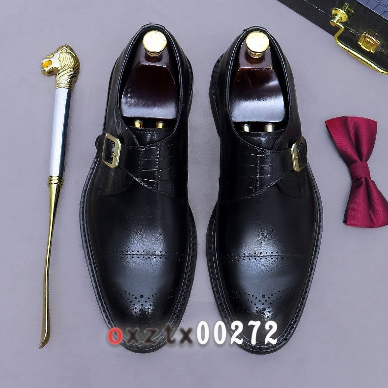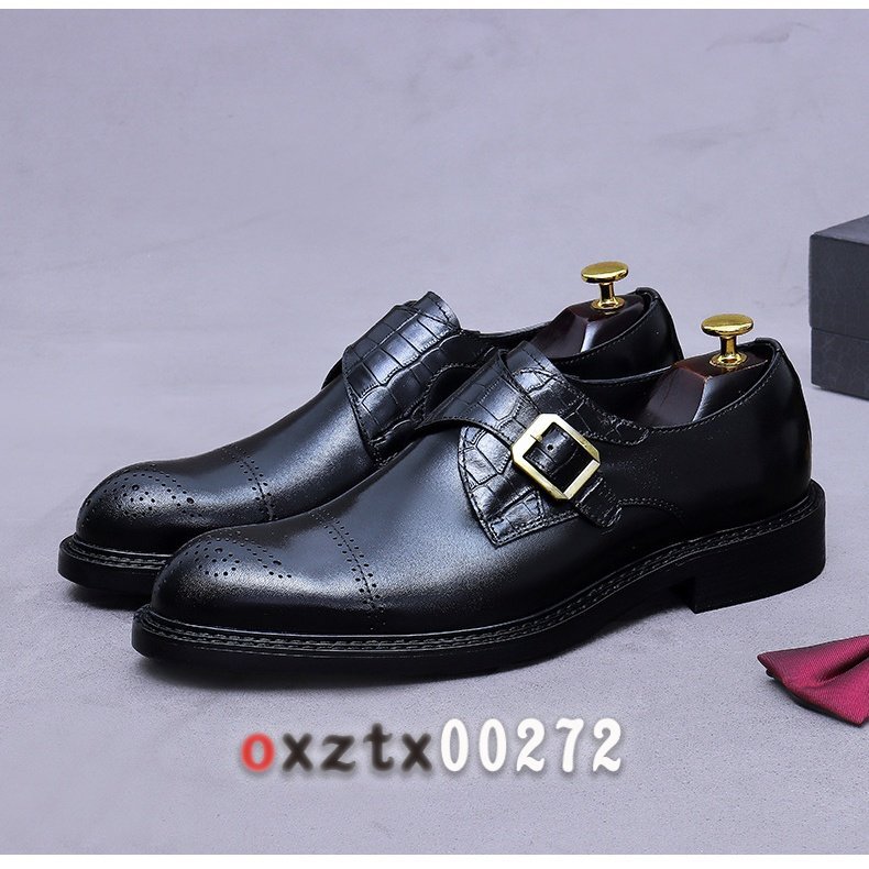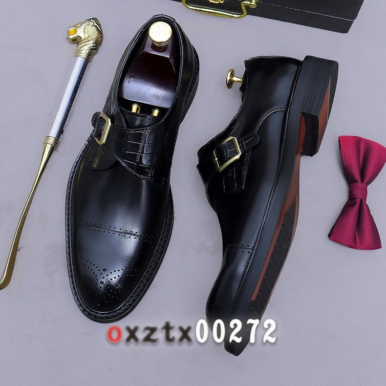 メンズ新作バックル付きトップグレート牛革モンクストラップシューズ男性用トレンド万能3つボタン彫刻カジュアルシューズ