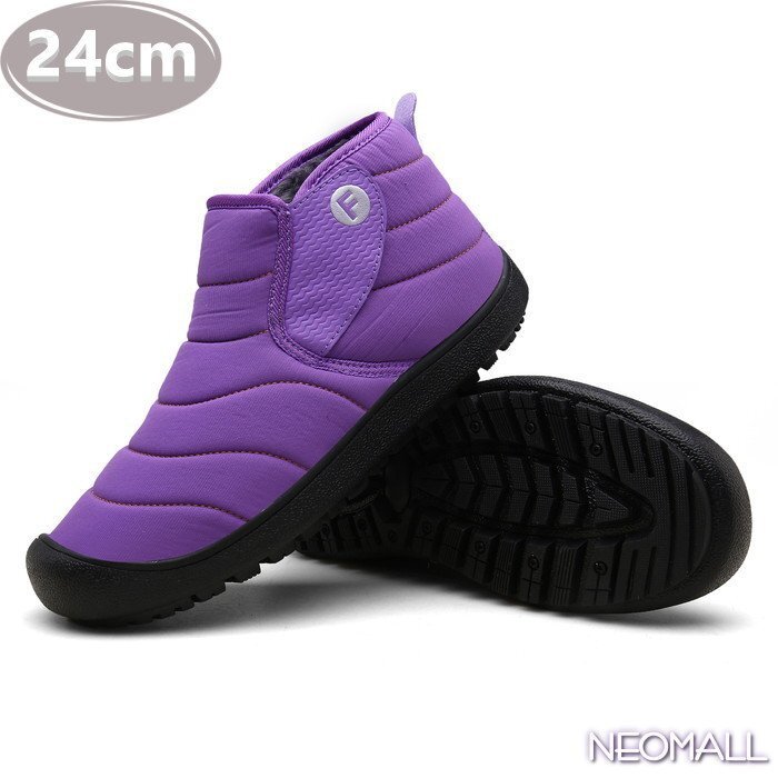 ユニセックス スノーシューズ 【869】 24.0cm パープル ムートンブーツ スニーカー ウィンターブーツ 裏起毛 防水 防寒 防滑 冬用靴 綿靴