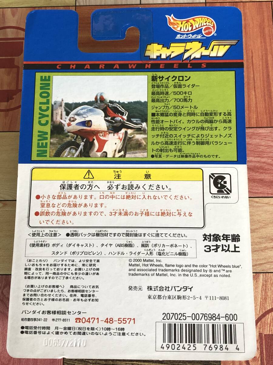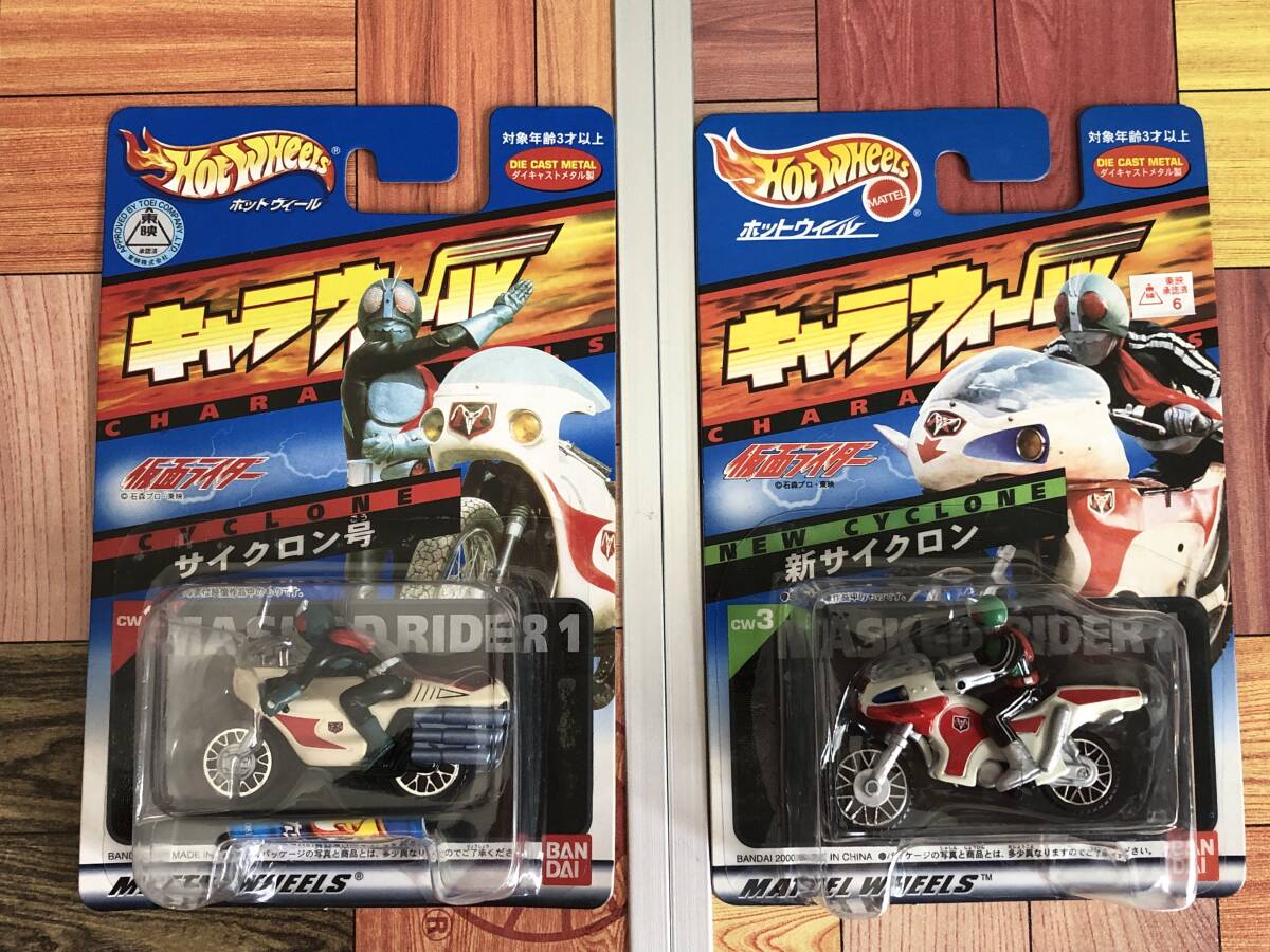 キャラウィールの仮面ライダーサイクロン号と新サイクロン号の2個セットです。どちらも未開封品です。コレクションでクローゼットにしまっていたものですが、かみさんにずっともんくを言われ続けられてきたので仕方なく断捨離です。購入後かなり年月が経っているのでそのあたりご理解のほどご了承いただけると幸いです。