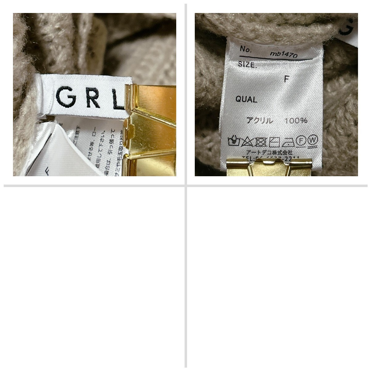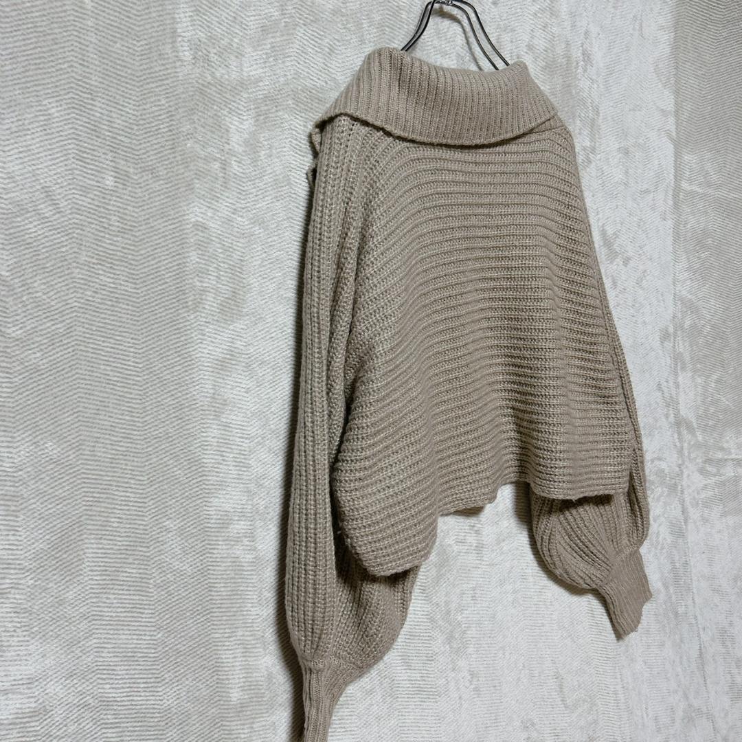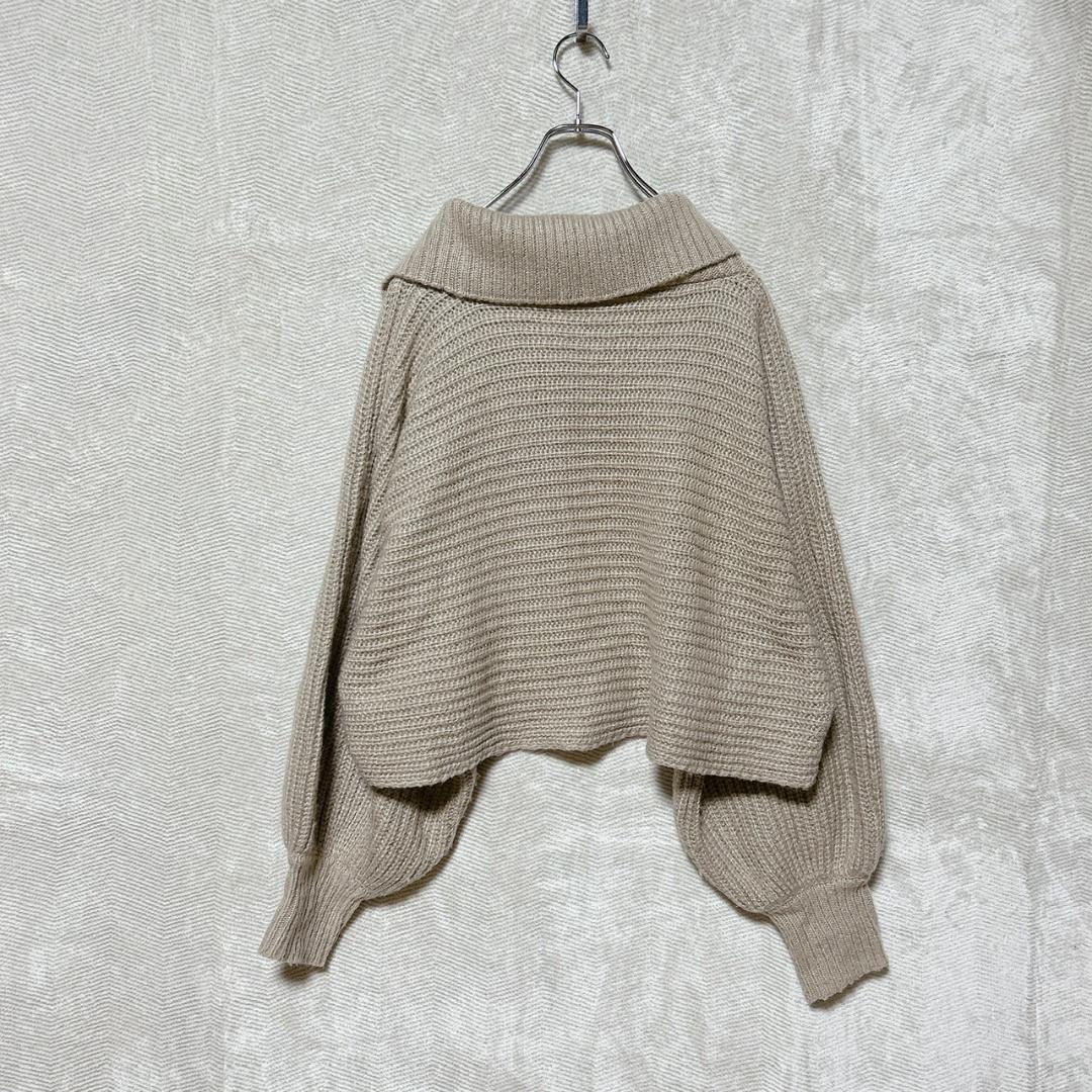 GRL グレイル ショート丈ニット ベージュ ポロカラー M ボリューム袖 E1014C