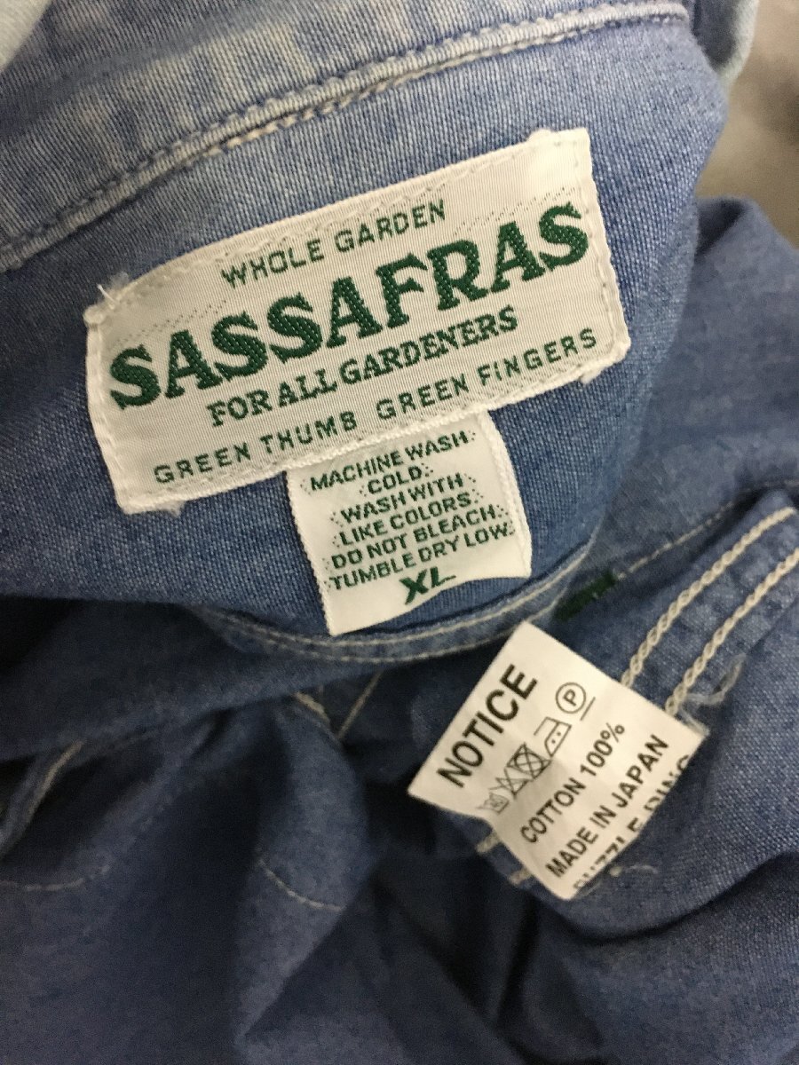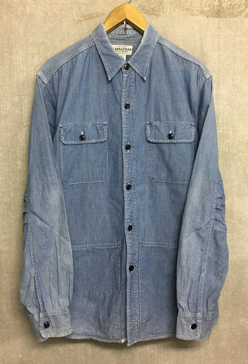 ◆SASSAFRAS ササフラス シャンブレー ガーデナー シャツ インディゴ サイズXL 使用感あり