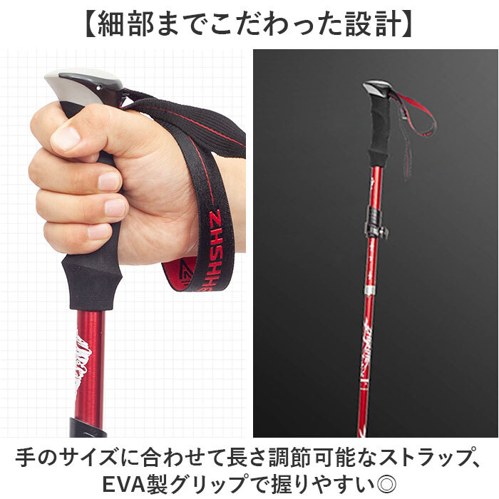 | 商品説明 | ・・【山歩きを快適に】 ・折りたたみ式トレッキングポール♪ ・【2重セーフティロック構造】 ・レバーロック&隠しのステンレスボタン式の2重ロック機能で安全・快適に使える! ・【細部までこだわった設計】 ・手のサイズに合わせて長さ調節可能なストラップ、EVA製グリップで握りやすい◎ ・【衝撃に強いABS素材を使用】 ・衝撃に強く、落としても安心。軽くて丈夫だから、気兼ねなく使える。 ・【伸縮調整が可能】 ・身長に合わせて長さ調整できる〇 ・【持ち運びに最適】 ・軽量・コンパクトに折りたためる◎ |