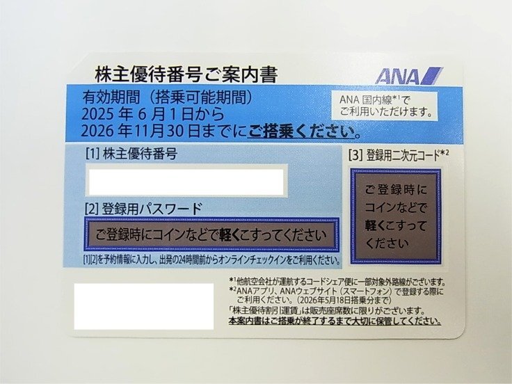 ■ ANA 全日空 ■ 株主優待券 2026年11月30日まで ブルー 番号通知対応 1枚 09-4