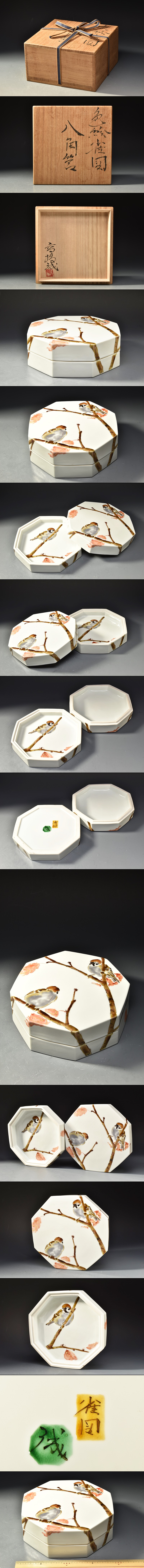 U06895 東京芸大 高橋誠 色絵磁器 色絵 雀図 八角筥 蓋物 陶筥 共箱 師 人間国宝 田村耕一 藤本能道 /AL
