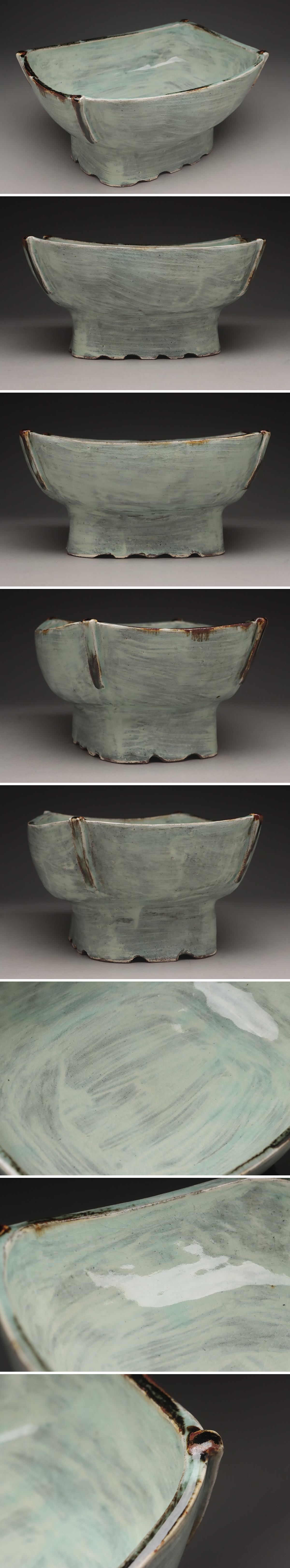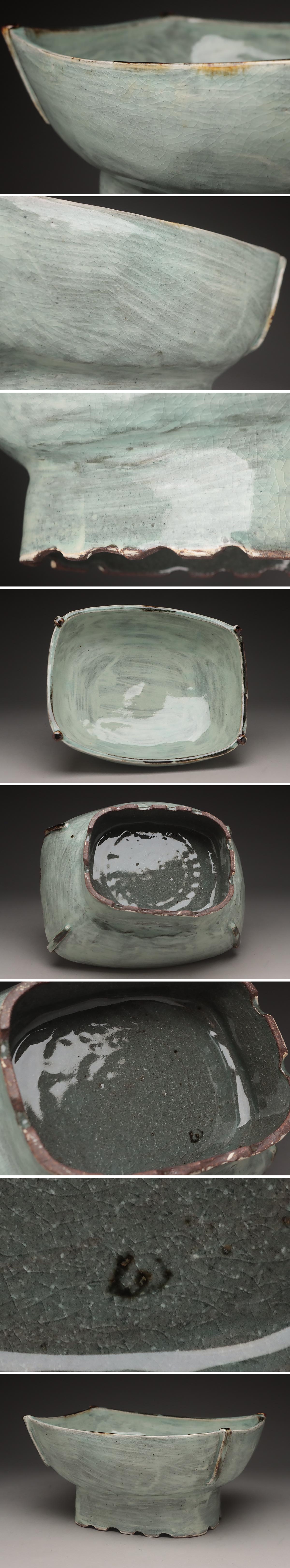 | ◆ 【朴英淑 作 パクヨンスク】 刷毛目 足付 長方鉢 幅27.2cm・祭器台・盛器・水盤・花生・花器 韓国陶磁 ◆