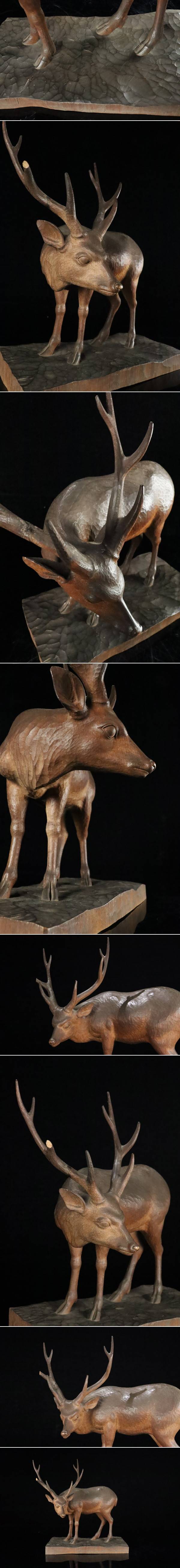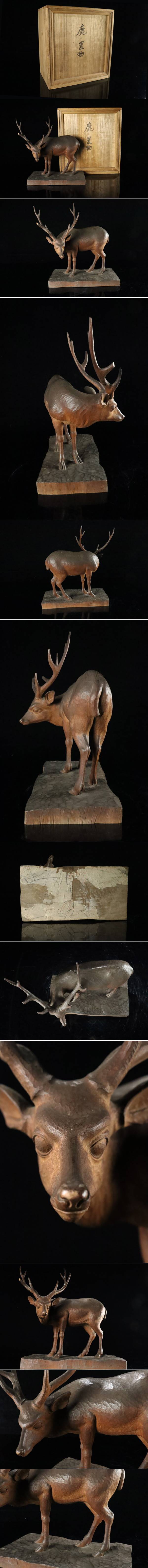 【ASAHI】コレクター買取品 極上 木彫 鹿 置物 時代箱 古美術品[71158qu]