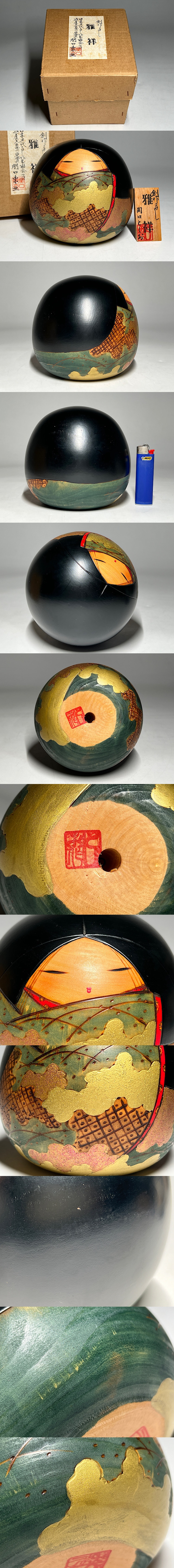 関口東亜作 創作 こけし 「雅祥」 民芸品 ◆商品詳細 寸法(約):12.3x13.4x13.5 (高×幅×奥行cm) ※寸法に若干の誤差が生じる場合もございます。 少し汚れ、剥がれ、シミがありますので、 ご承知の上入札お願いします。 状態等画像にてご確認の上ご入札よろしくお願いいたします。 ◆発送先等のご連絡とお支払いについて ※発送先等のご連絡 落札時から48時間以内にお願い致します。 ※お支払 かんたん決済の期限内にお願い致します。 複数点落札時にまとめて取引の場合(72時間内)に、 まとめて取引の取引手順(落札者方の操作)を参考にお願い致します。 梱包したサイズを測って、地方によって送料を決めますので、よろしくお願いします。 ◆掲載画像について ※画像は現物を撮影しておりますが、照度、遮光、モニターによっては実物と 色目が異なって見えることがありますのでご注意ください。掲載画像では確認 できない傷や汚れがある可能性もございます、あくまで 中古品であるということをご承知の上、御入札をお願い致します。 ◆補償について 商品到着後はすぐに状態の確認をお願い致します。 商品の破損等がございまし たら、箱や梱包材など全てそのままの状態で保存し、お早めにご連絡ください。 (到着日から一週間以上経過、梱包材の廃棄済み等の場合、保証は致しかねます のでご注意ください。) ◆返品について 思っていたイメージと違う、などのお客様主観による返品はお受けできません ので、予めご了承ください。ノークレーム、ノーリターンでお願いします。届 いた商品が商品説明と著しく異なる場合(寸法、キズ記載ミスなど)のみ承り ます。早めにご連絡ください。 ◆注意事項 当方の希望価格と隔たりがある場合は、終了前にやむなく取下げさせて頂く場 合がございます。 ※商品ご落札翌日から4日間以内にご連絡が取れない場合は、入札取消の処置を 取らさせていただく場合がございます。 ※評価の悪い方は取り消す場合がございます。 ※原則として当方の不備以外のキャンセル・返品・返金は受け付けておりません。 以上の点を予めご了承頂いた上で、入札・落札お願い致します。 ◆発送方法 ▼ゆうパック(補償あり/追跡あり) 梱包後のサイズ:~約60cm ※送料全国一律880円 (但し北海道、沖縄、離島は+500円いただきます。) 発送元は静岡県となります。 ( 商品の組み合わせによっては同梱をお断りさせていただく場合があります。) ※大型商品について 郵便局の規定を超える商品の場合は、佐川急便またはヤマトでの発送となります。 |