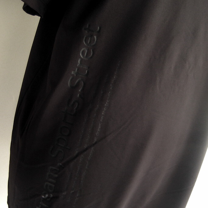■モードな印象を際立たせる光沢感のあるロゴプリントをボディと左袖に配し、さりげなさの中にデザインポイントを加えています