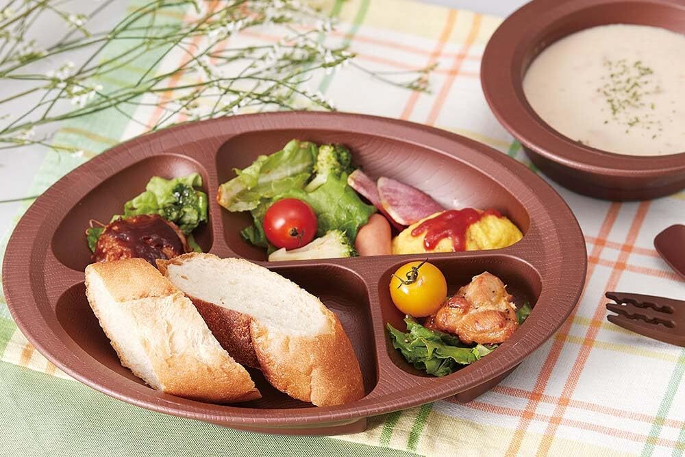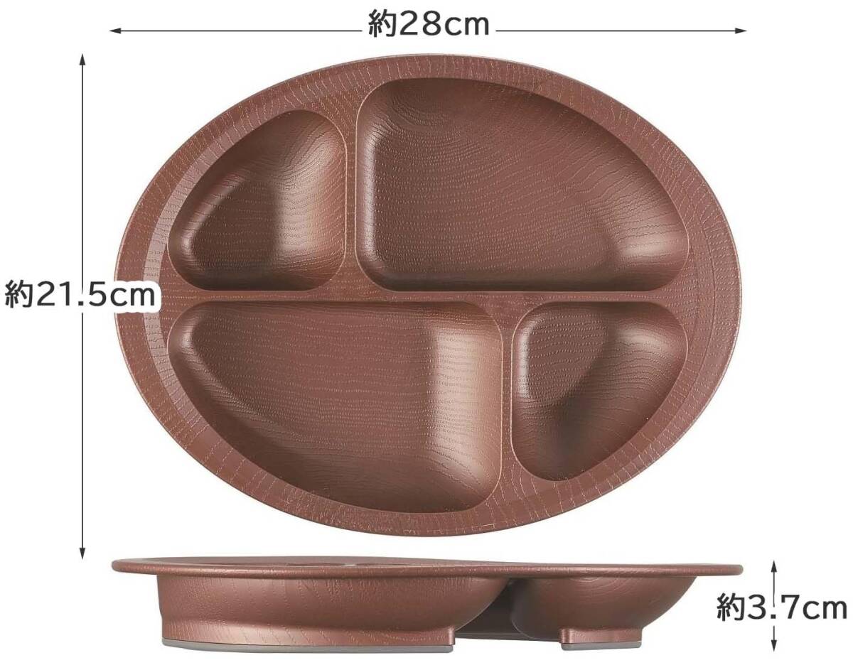 説明 木目調で馴染みやすい仕切りプレート 返りがありスプーンですくいやすい 返りは左右両利き対応 樹脂製なので軽量で割れにくい すべり止め付 安心・安全の日本製 電子レンジ・食洗機の使用OK お子様から高齢者まで使う人にやさしいユニバーサルデザイン食器