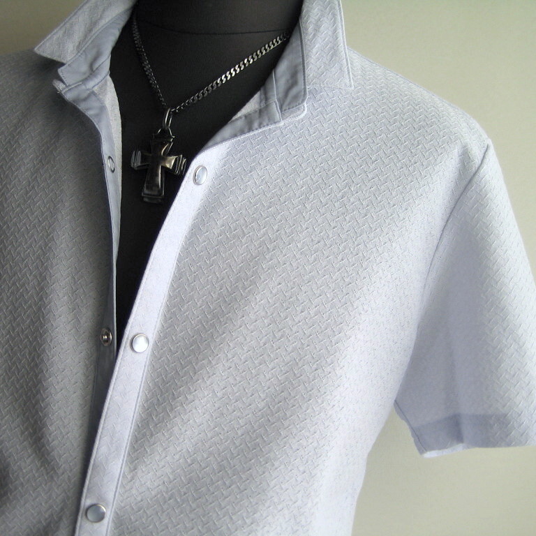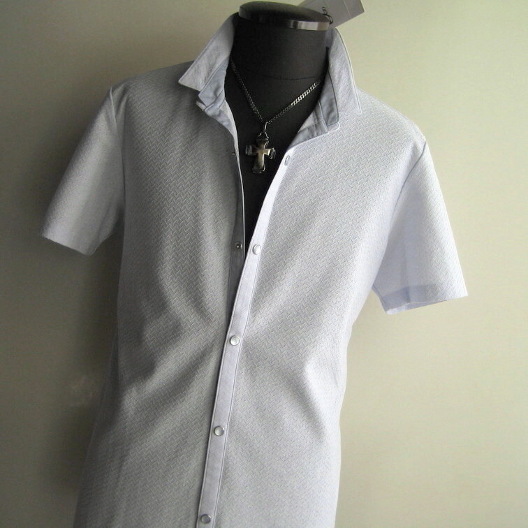 1.2万 新品 トルネードマート L 網柄メランジリンクスカットシャツ半袖 サックスブルー 送料無料 サンプル 711
