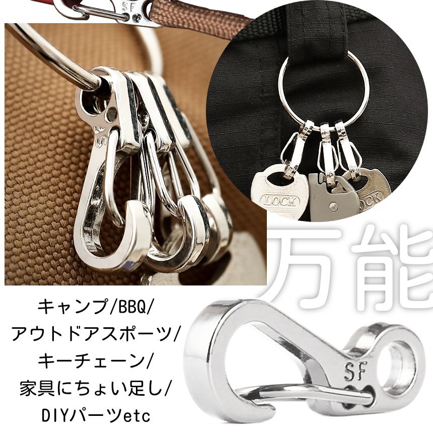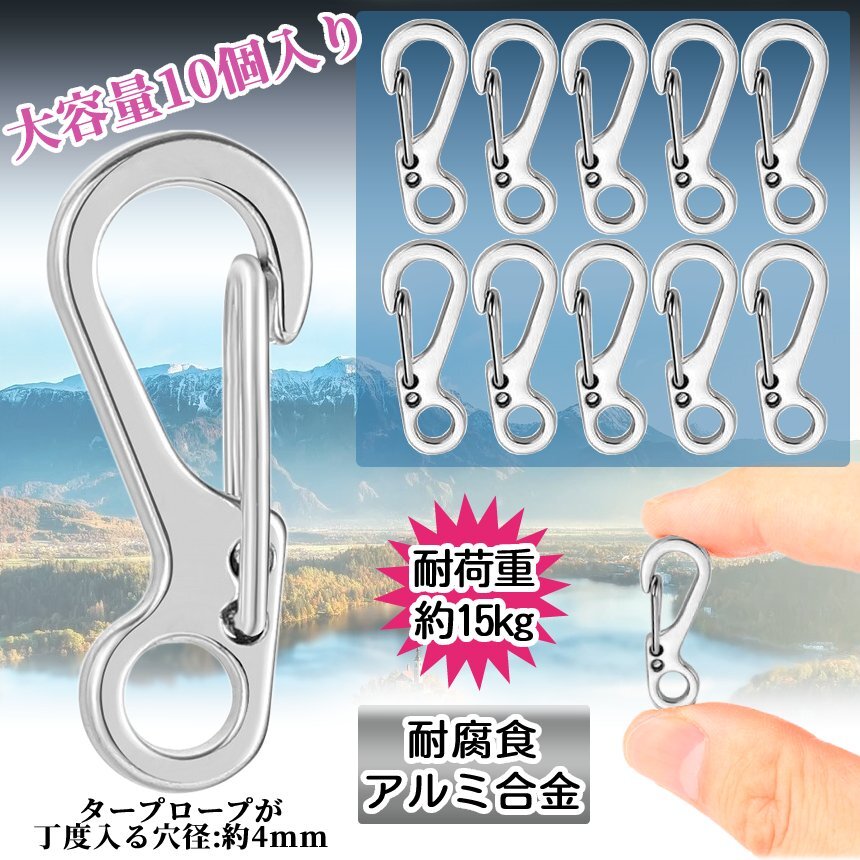 10個 ナスカン 万能 カラビナ 登山 レジャー キャンプ カバン silver タープロープ ガイロープ リング キーチェーン 工具 旅 RYUKARA