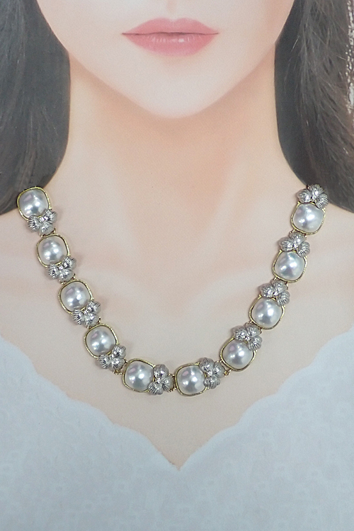 コメント小川和朗の、優しいつやめきのマベパールを贅沢にセットした、エレガントな雰囲気のネックレスです。全体的に梨地加工が施されており、あたたかみと落ち着きのある華やかさが魅力的なお品です。