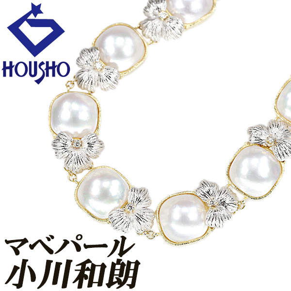 【セール開催中】小川和朗 マベパール ネックレス ダイヤモンド K18YG Pt900 KAZUO OGAWA デザイナー 葉 リーフ ボタニカル 宝正 903093