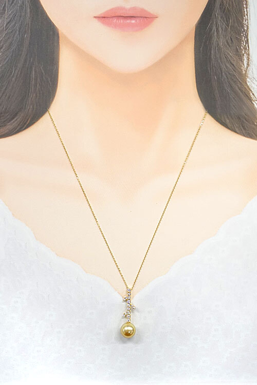 | ■コメント | タサキの、ゴールデンカラーの艶やかな白蝶パールが華やかな雰囲気のネックレスです パール上部にはボタニカルモチーフにダイヤモンドがセットされており、パールとは異なるキラキラとした煌めきで胸元に輝きを集めます |