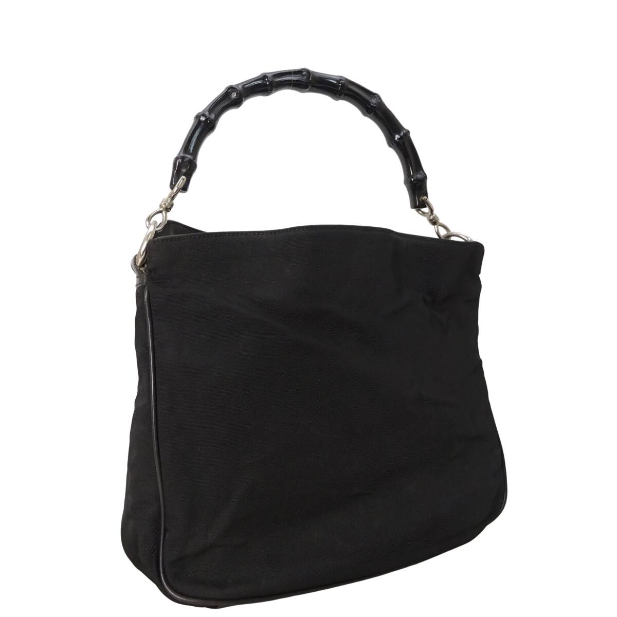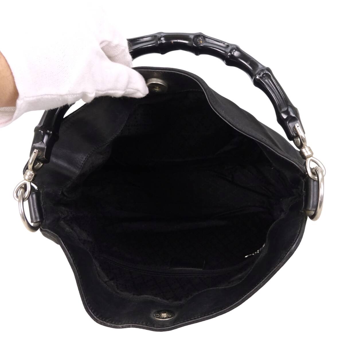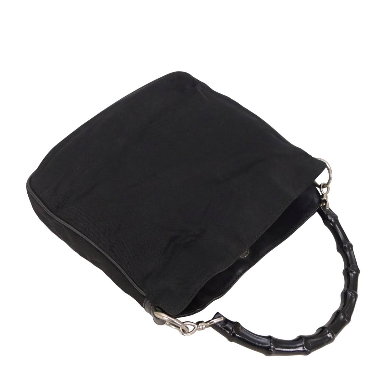 本物 ■グッチ■バンブー ブラック ナイロン キャンバス レザー ショルダーバッグ ハンドバッグ /988952