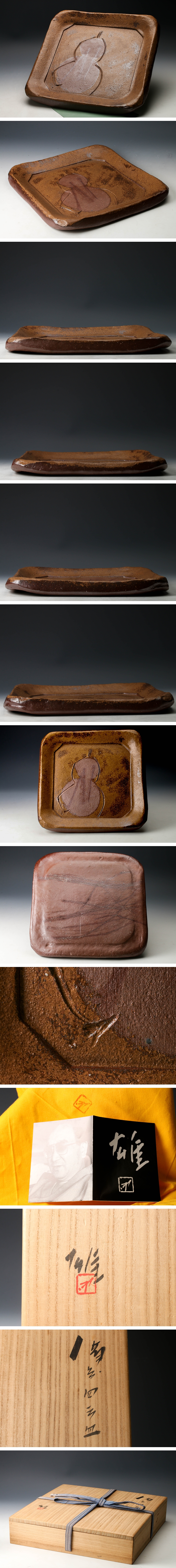 【佳香】人間国宝 藤原雄 幅35cm 備前四方皿 共箱 共布 栞 本物保証