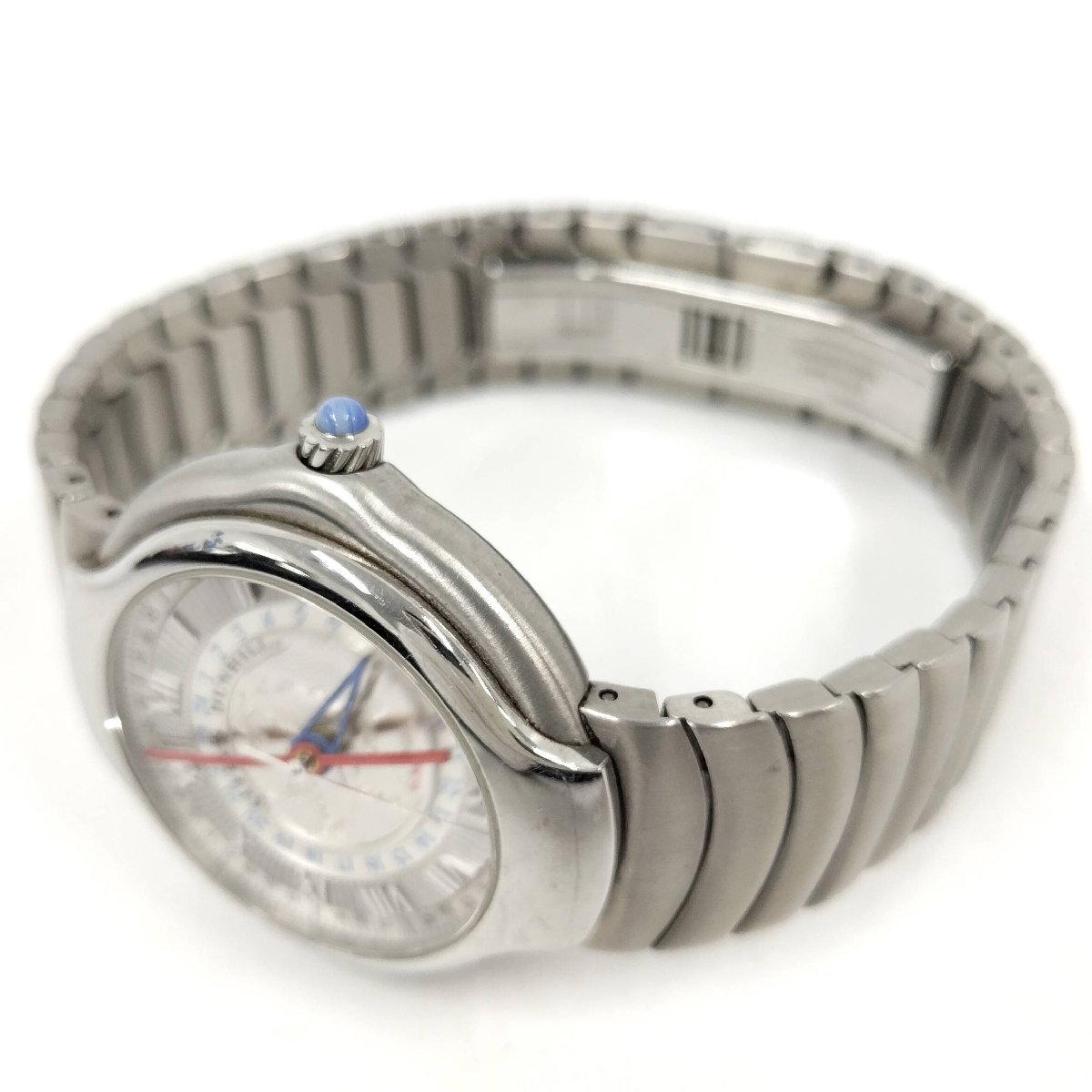 【状態ランク】中古B 【サイズ】最大直径約36mm ※リューズ除く 腕周り:最大約19cm 【詳細】 ・動作確認済み。※長時間の動作確認は行っていません。 ・全体的に(風防含む)小傷やスレ、汚れなど使用感ございます。 ※詳細は画像をご確認下さい。 ムーブメント:自動巻き 【付属品】画像の通り(ケースにダメージございます。※中ケース欠損) 【弊社番号】99710000000845[ne]um82 |