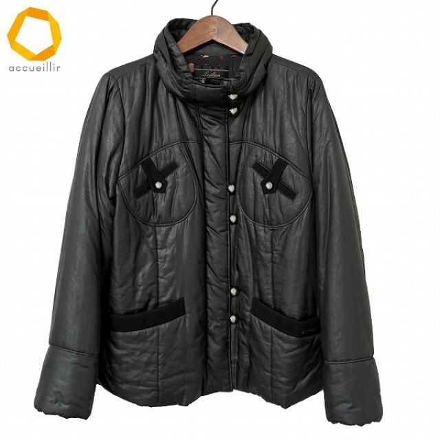#wnc レリアン Leilian ジャケット 13+ 黒 TUTTI di CLASSE スタンドカラー 中綿 フード付 異素材使い 大きいサイズ レディース [975520]